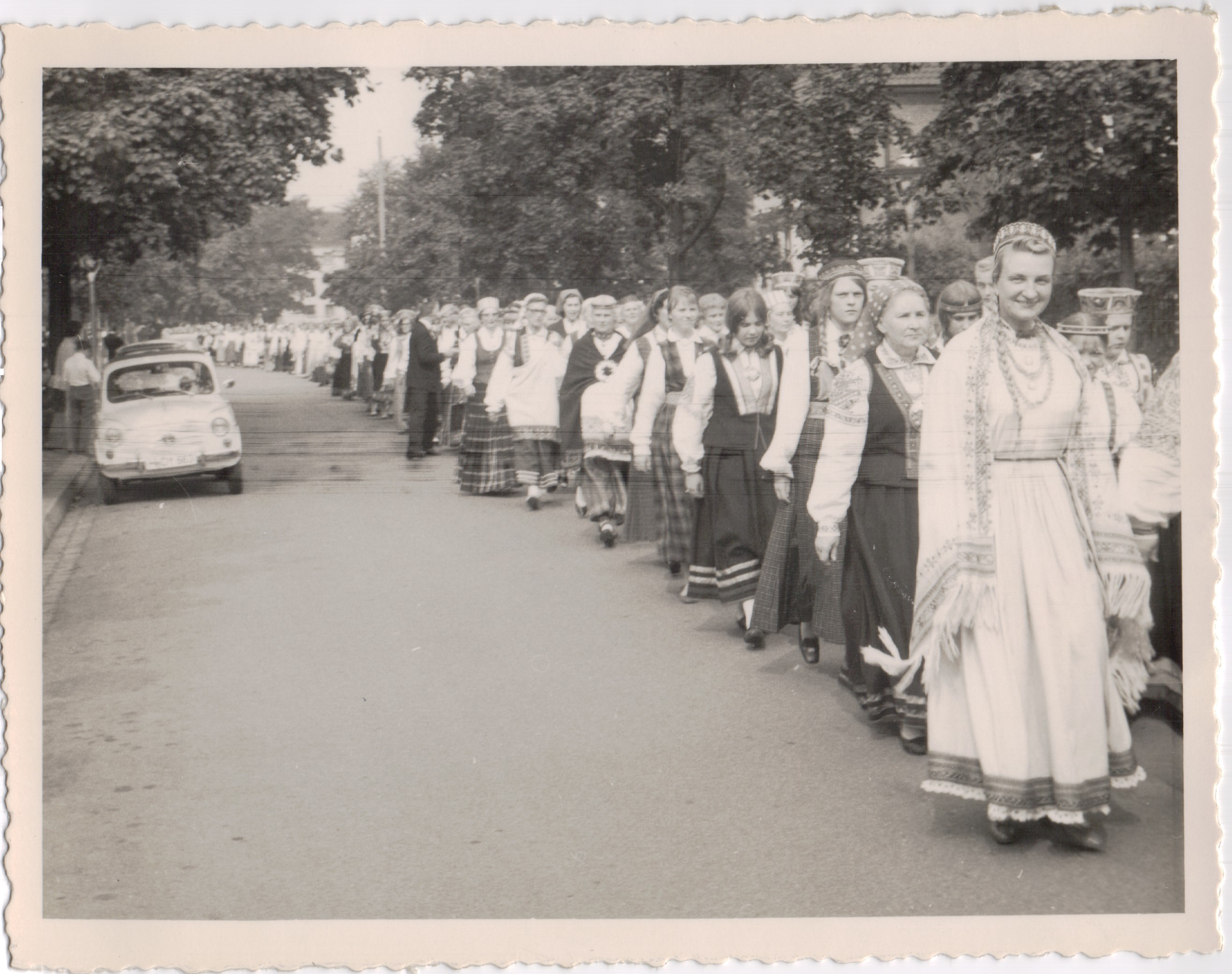 Dziesmu svētku dalībnieku gājiens uz svētku vietu.
