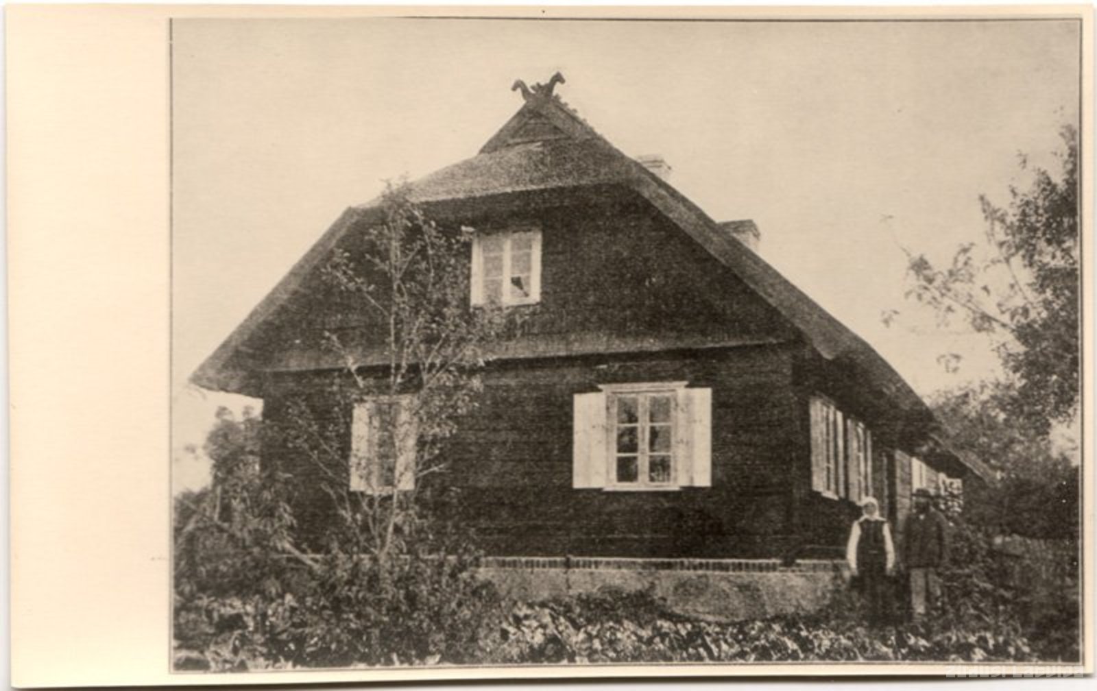Rucavas "Blusu" māju galaskats ar brodiņu un zirgu galvu rotājumu jumtgalē
