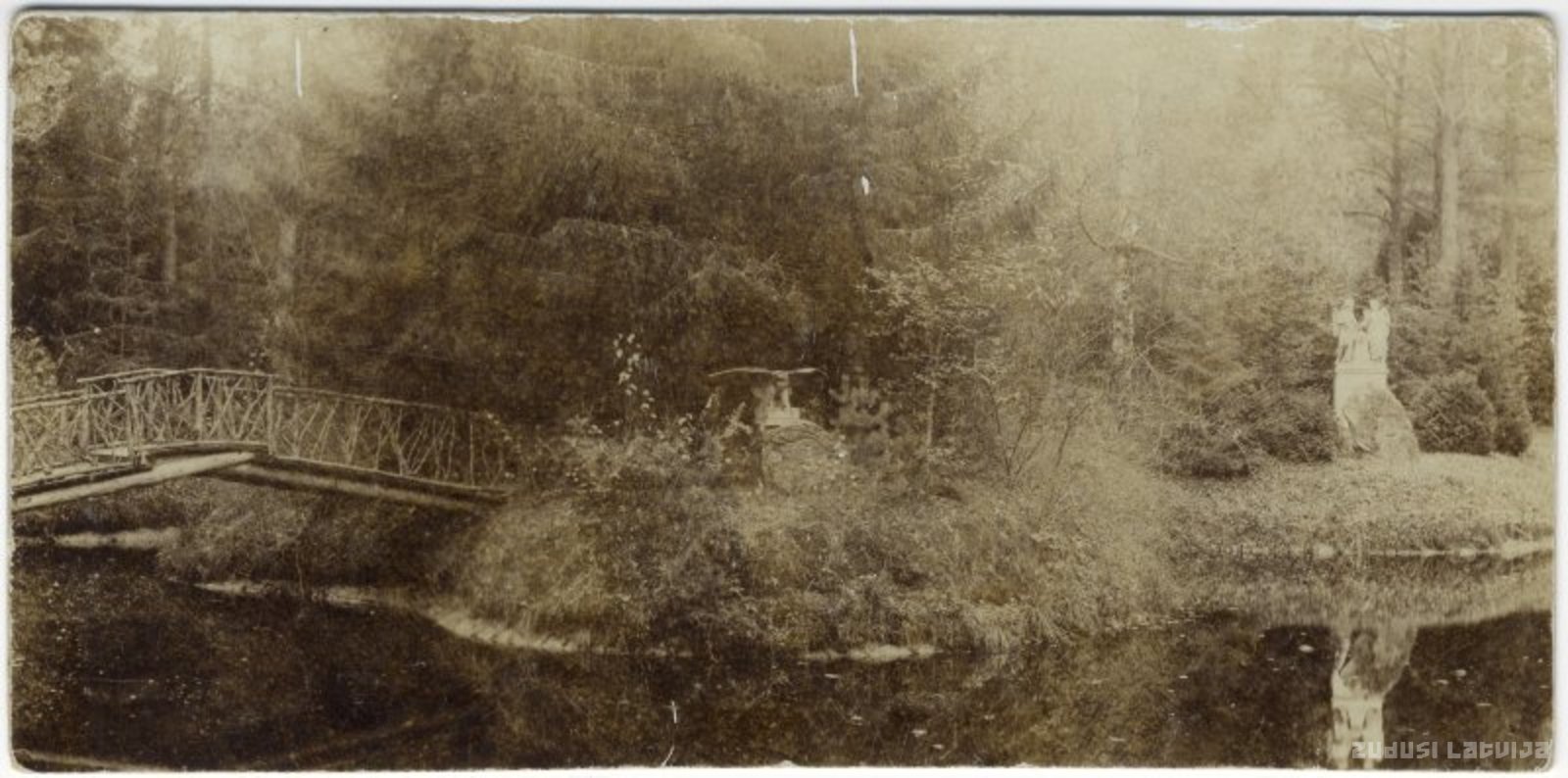 Tiltiņš un divas no sešām mazajām saliņām Gulbenes bijušā Marijas parka (mūsdienās - Emzes un Spārītes parki) Svētajā ezerā (dīķī). Parku ierīkošana Gulbenē sākās 19. gadsimta vidū, kad barons Johans Gotlībs fon Volfs nopirka Vecgulbenes muižu. Svētais ezers bija viņa mazdēla Heinriha fon Volfa dāvana sievai Marijai (Marisai), kuras vārdā nosaukts arī parks, dzimšanas dienā. Ezera vidū bija izveidota viena lielāka sala, apkārt sešas mazākas. Visās salās atradās dažādas skulptūras (eņģeļi, fon Volfu simbols- vilki, lāči, putni u.c.), mazajās bija novietoti akmeņi ar baroneses vārda burtiem (attēla centrā redzams burts „A”, pa labi – „M”). 20. gadsimta 20. gadu agrārās reformas laikā Vecgulbenes Marijas parks 222 ha platībā kļuva par valsts īpašumu un „aizsargājamu dabas krāšņumu”. 1935. gadā Marijas parku sadalīja divās daļās, vienu daļu piešķirot Zemkopības ministrijai un otru - Gulbenes pilsētai, tādējādi izveidojot Emzes parku (166,6 ha) un Spārītes parku (40,9 ha). Svētais ezers atrodas Spārītes parka teritorijā. Spārītes parks ir ieguvis vietējas nozīmes dabas pieminekļa statusu. Līdz mūsdienām parkos ir saglabājušās 79 koku un krūmu sugas un dīķi, taču skulptūras utt. I pasaules kara laikā un vēlāk lielākoties gājušas bojā.