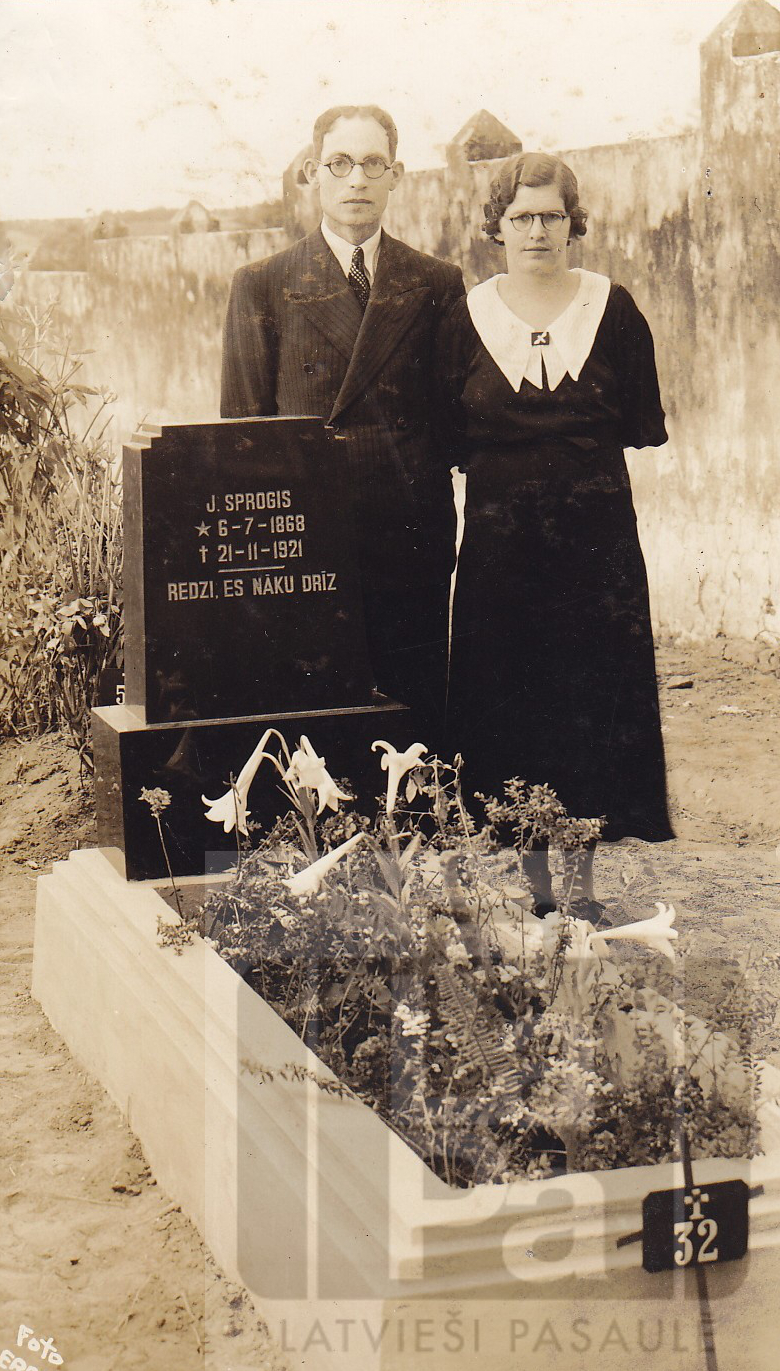 Ernests un Elza Sproģi pie Jorena Sproģa kapa