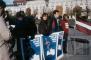 (No labās) Tija Kārklis, Arnolds Kārklis, Klāvs Balodis tur Latvijas karogu un plakātus demonstrācijā Eiropas drošības un sadarbības konferences laikā Vīnē, Austrijā.