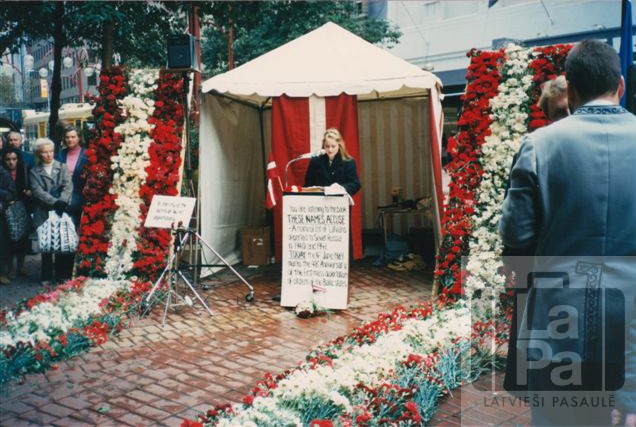 Solveiga Silkalne lasa izsūtīto vārdus deportāciju piemiņas pasākumā Melburnā
