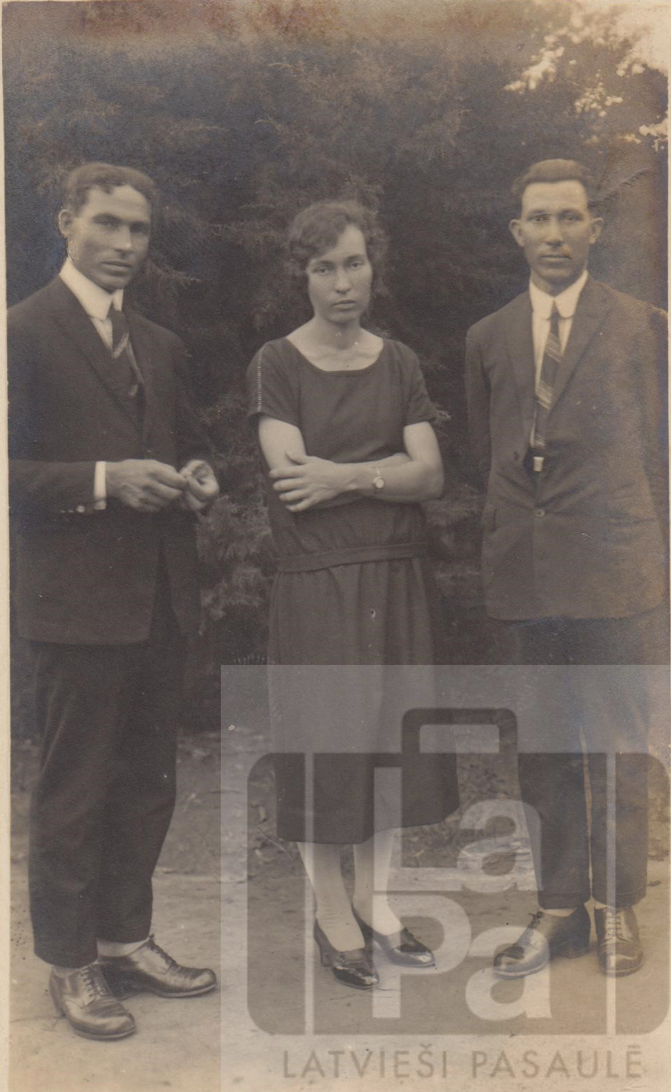 Latviešu baptisti (no kreisās) Ernests, Emma un Žanis Sproģi. Iespējams, pēc mātes Ilzes bērēm 1931. gadā.