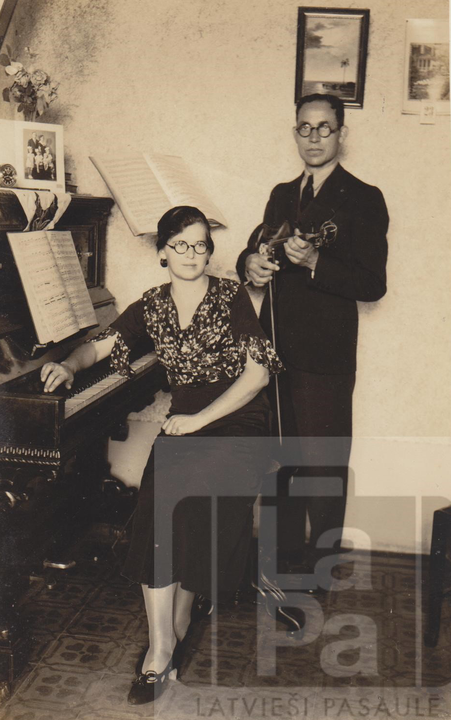 Brazīlijas latvieši, baptisti Ernests Sproģis ar sievu Elzu (dzimusi Peterlevics). Otrā pusē: A. g. Emīlijai un Žanim Sproģiem. Sirsnīgs sveiciens Lieldienas svētkos 12 – IV – 36.
