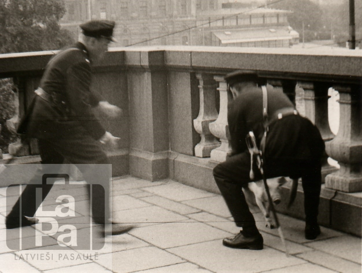 Policisti mēģina noķert palaistu sivēnu (saukts arī par "sarkano sivēnu"), uz kā uzzīmēta Hruščova karikatūra, pretpadomju saukļi un kam apsiets sarkans karogs. Protesta akcijā piedalījās Vija Pole (Freimane), Jānis Veidemanis, Jānis Brēdermanis u.c. Sivēns tika palaists Hruščova viesošanās laikā Stokholmā 1964. gada jūnijā, netālu no karaļa pils. Sivēns bija ieziests ar eļļu, lai to grūtāk noķert.