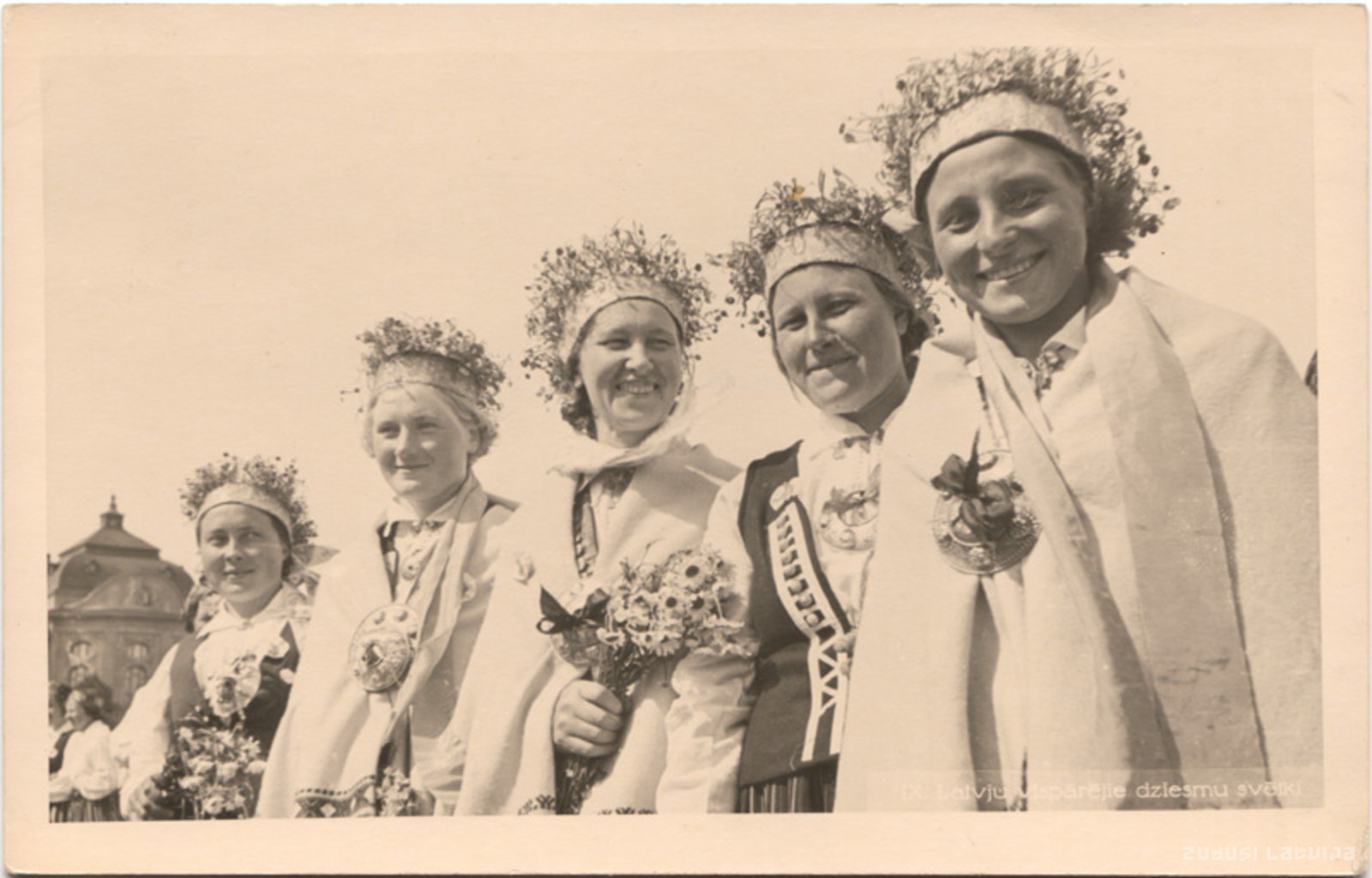 Rucavnieces tautastērpos Rīgā Esplanādē