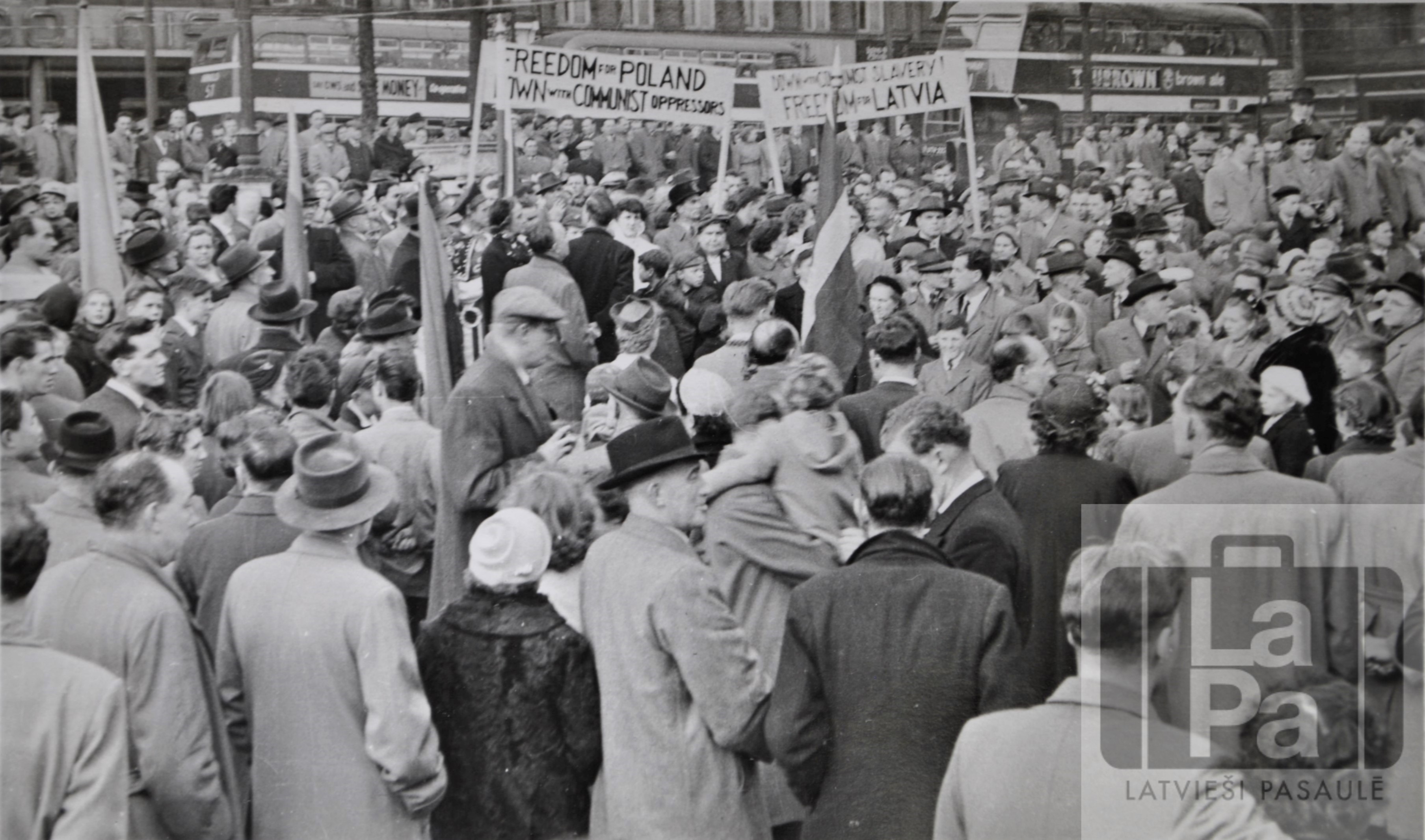 Apspiesto tautu (captive nations) demonstrācija Notingemas (Nottingham) pilsētas centrā. Mītiņš bija vērsts pret Hruščova un Bulgaņina viesošanos Anglijā.
