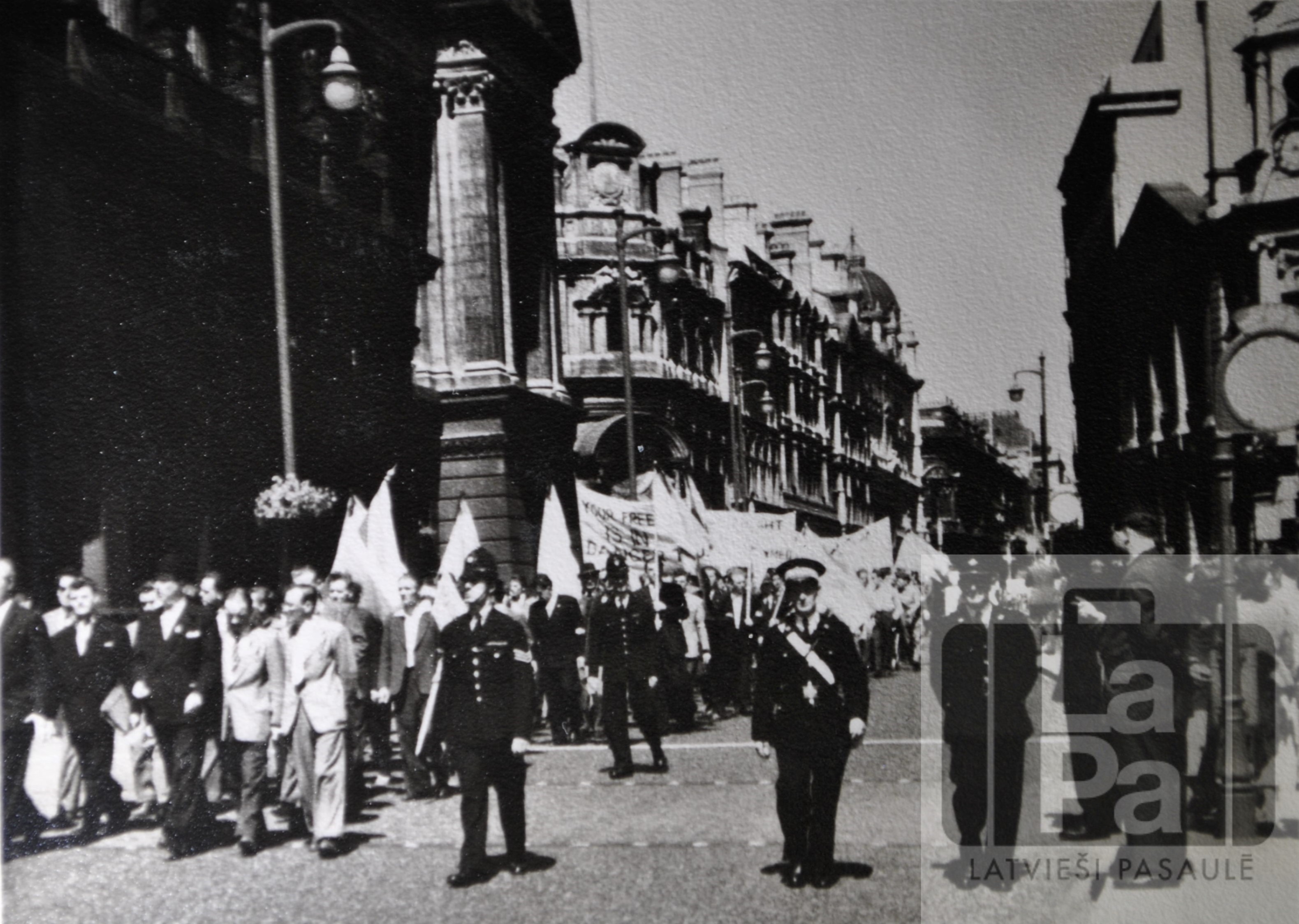 Apspiesto tautu ("Captive nations") demonstrācija – gājiens Londonā pret Hruščova un Bulgaņina viesošanos Anglijā.