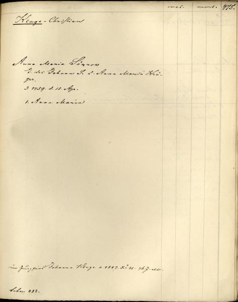 Materialien zur Personenkunde der Ostsee-Provinzen [Baltijas ģenealoģisko materiālu kolekcija] / August Wilhelm Buchholtz. - Band 23. - Riga, 19. Jahrhundert. - S. 475 – 476.