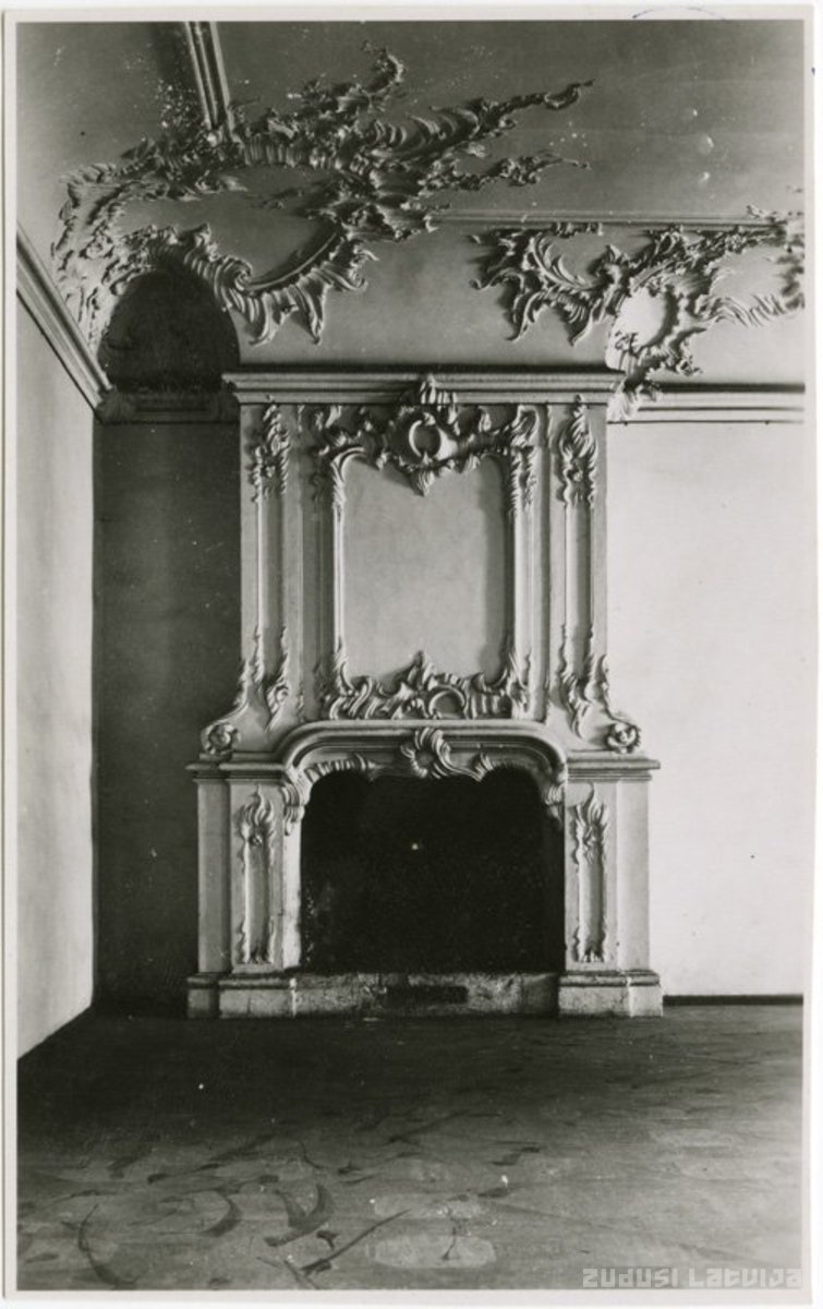 Tajā saglabājies viens no retajiem rokoko interjeriem - baltās zāles griestu dekoratīvā apdare stuka veidojumā. Ēka pārbūvēta 1860. gados. Baltās zāles retais rokoko stila interjers veidots laikā, kad muiža piederēja baronam fon Bēram