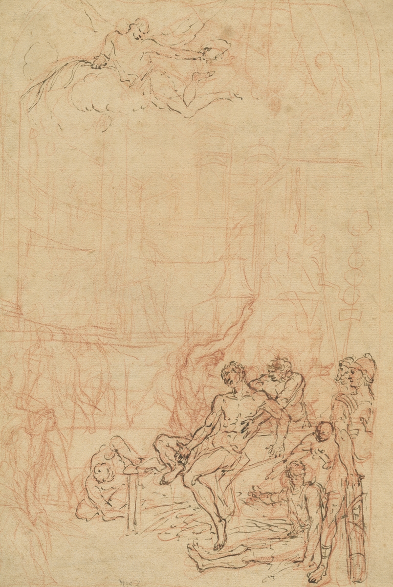 1 zīmējums : papīrs, sangīna, spalva, tuša ; lapas izmērs: 35,4 x 24,4 cm