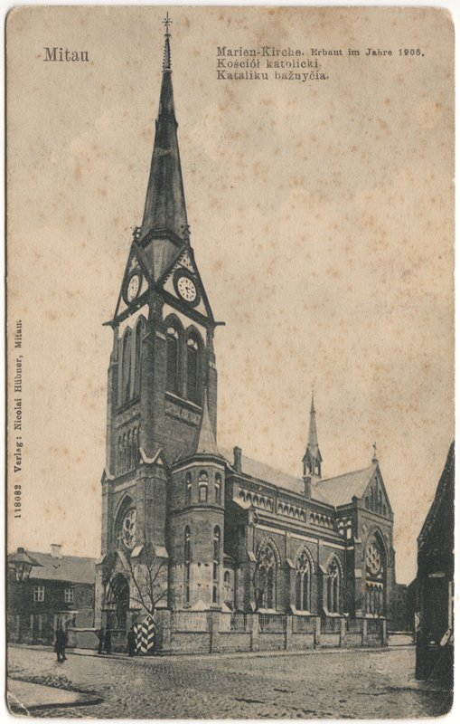 Marien-Kirche. Erbaut im Jahre 1906 [attēls] = Kościół katolicki = Katalikų bažnyčia / fotogrāfs nezināms