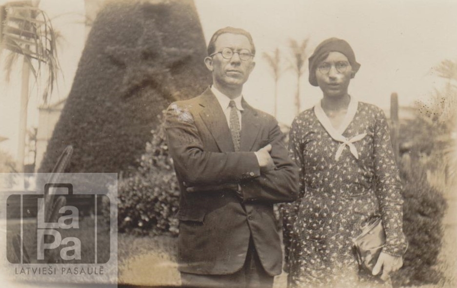 Latviešu baptisti Žanis Sproģis ar māsu Emmu parkā.