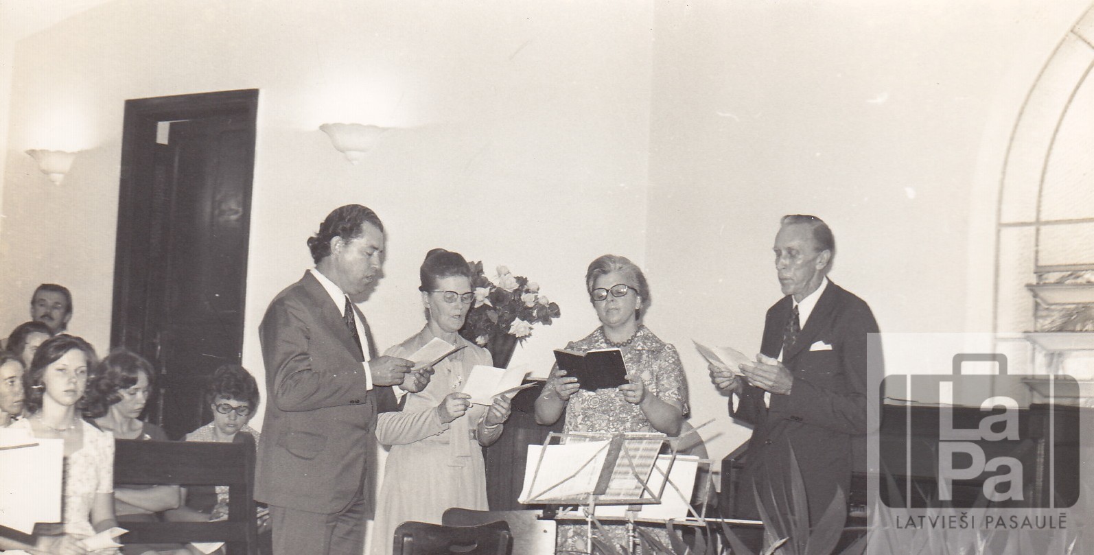 Kvartets dzied Sanpaulu latviešu baptistu draudzes 40 gadu jubilejā 1974. gada 27. oktobrī.