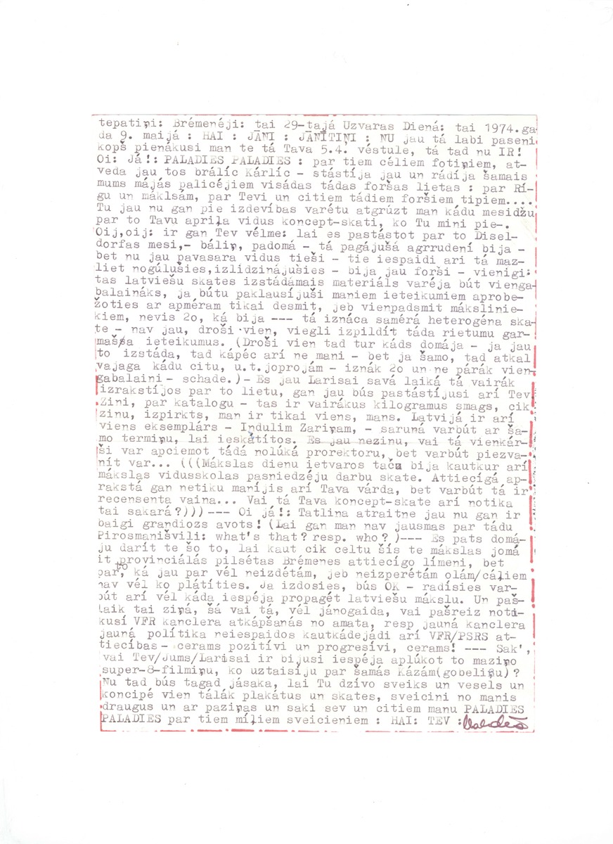 Valda Āboliņa vēstule Jānim Borgam