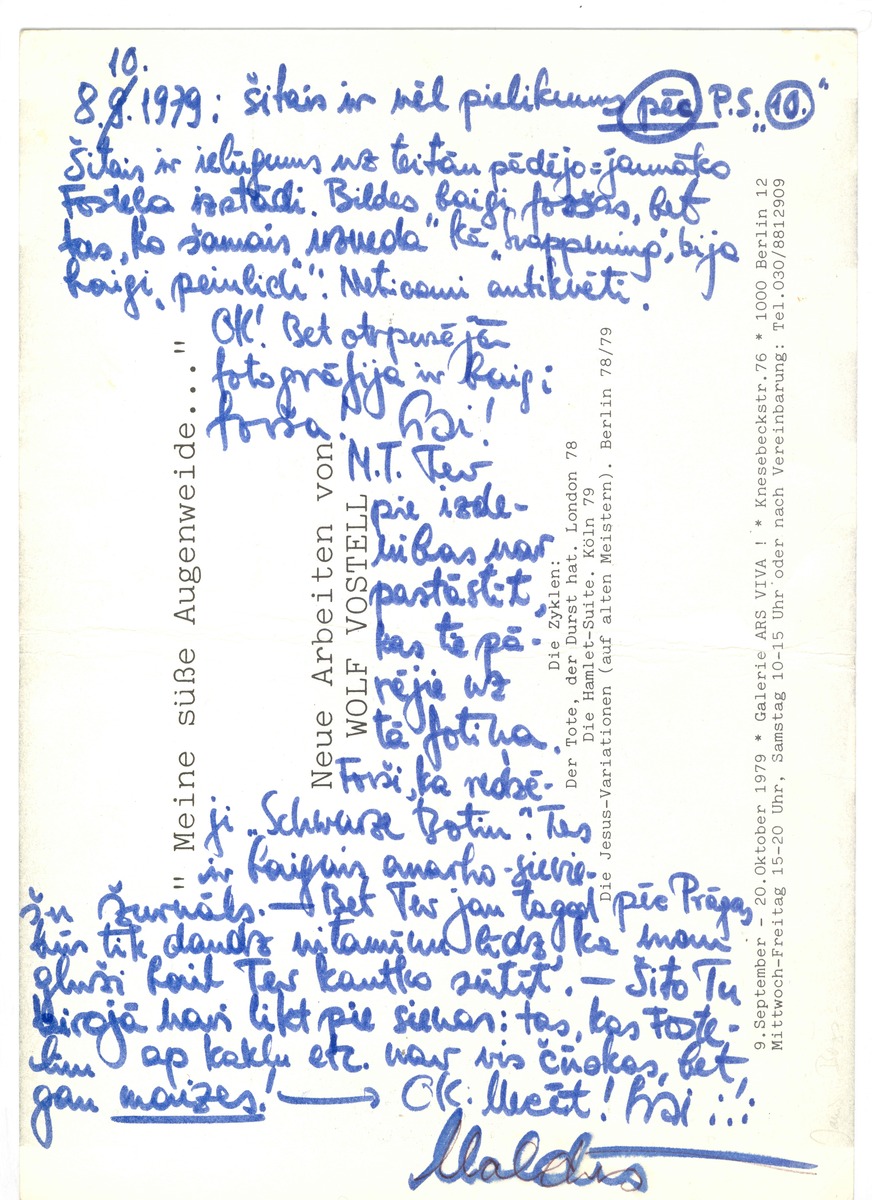 Valda Āboliņa pastkarte Jānim Borgam