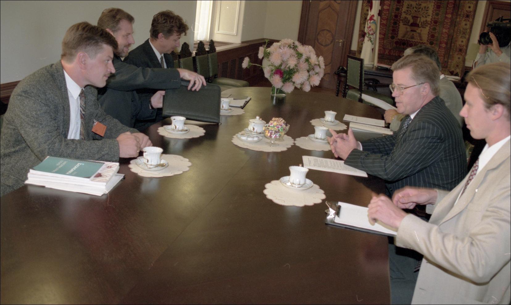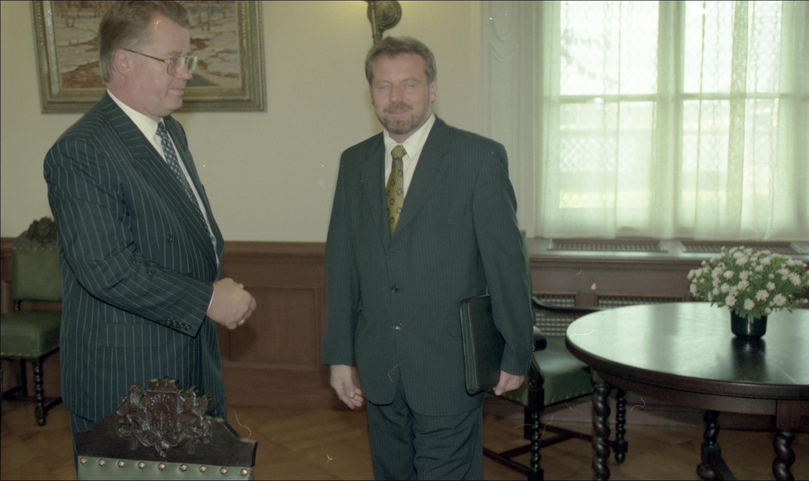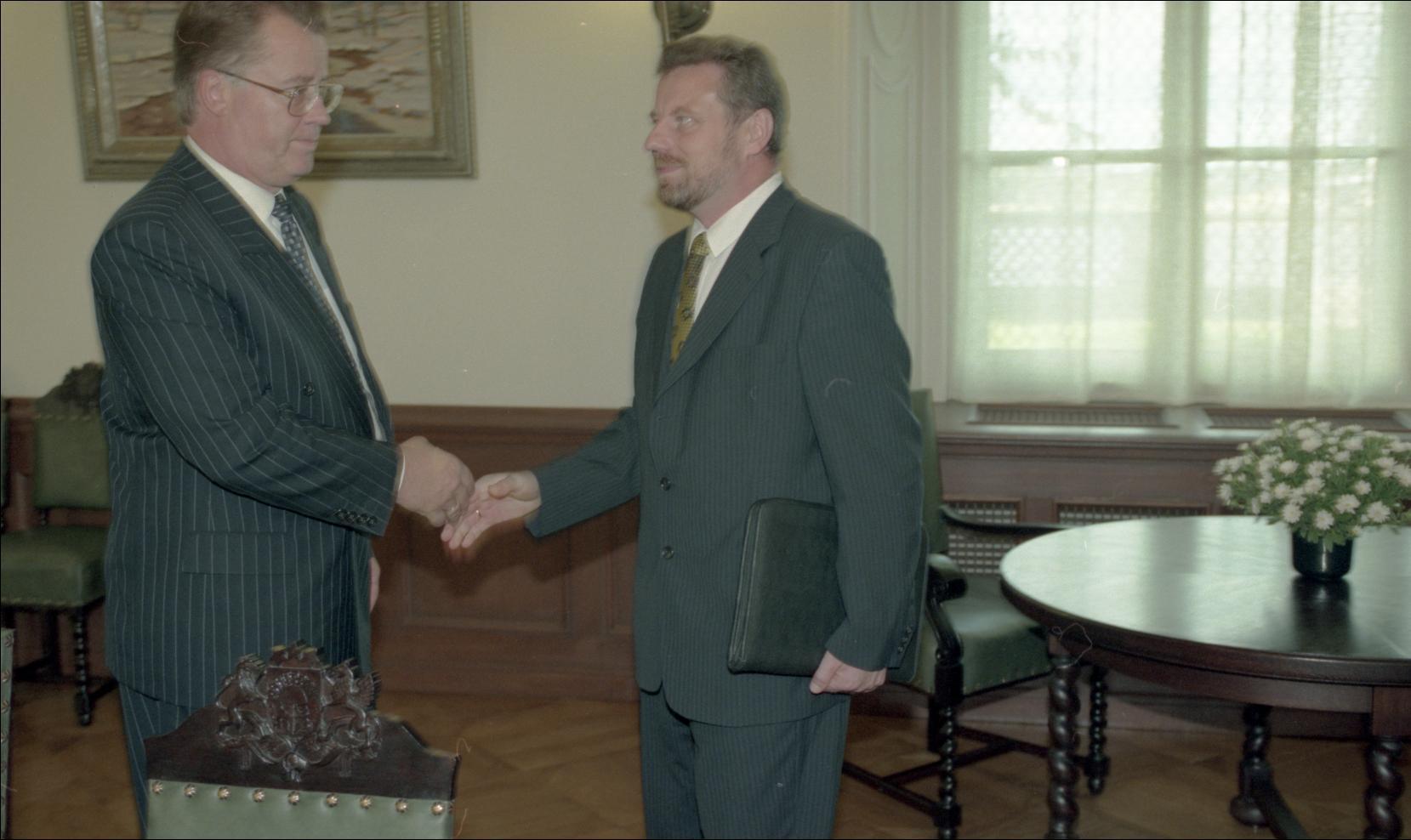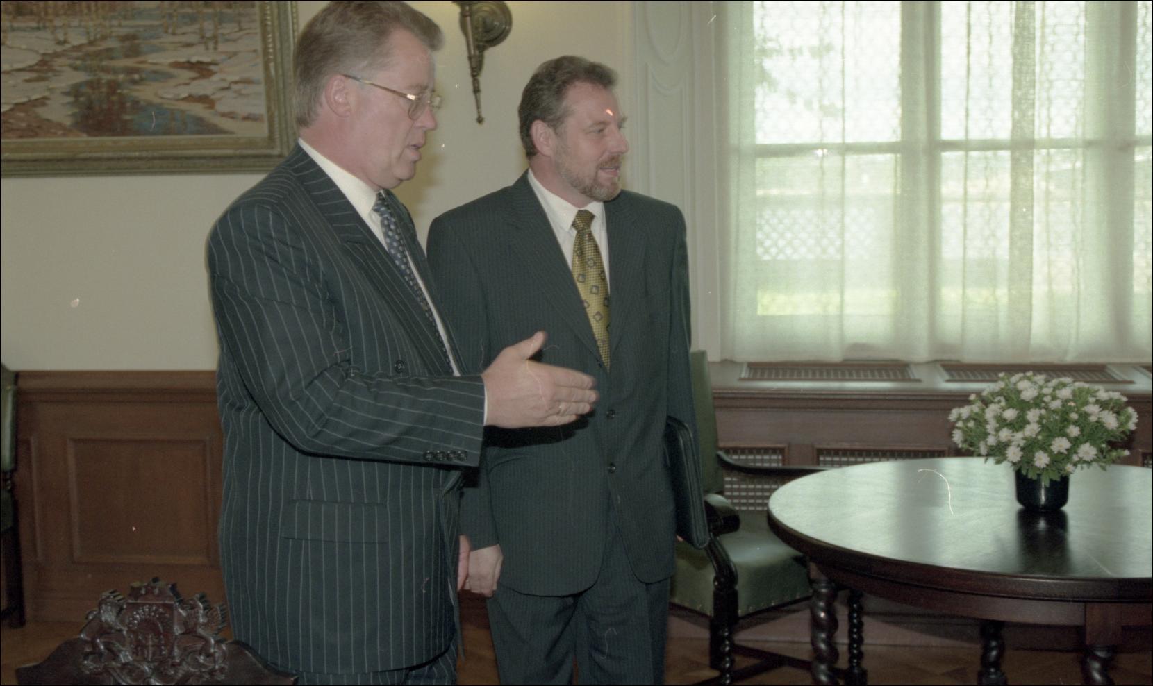 Guntis Ulmanis tiekas ar Juri Celmiņu(pārrunas par izglītību).