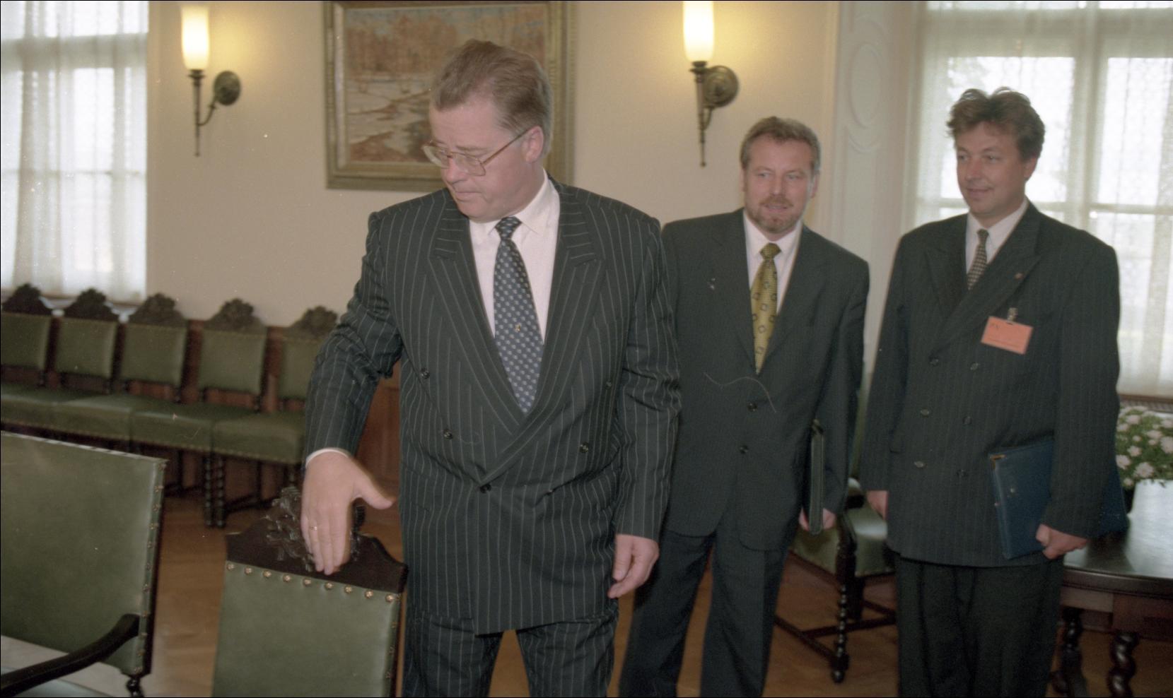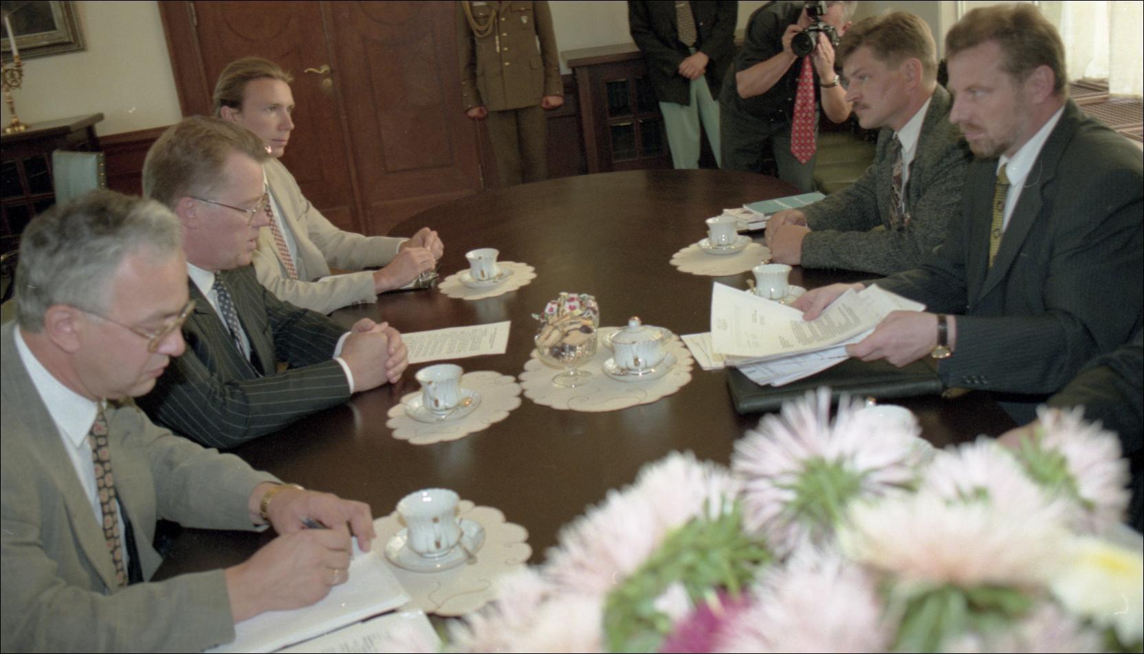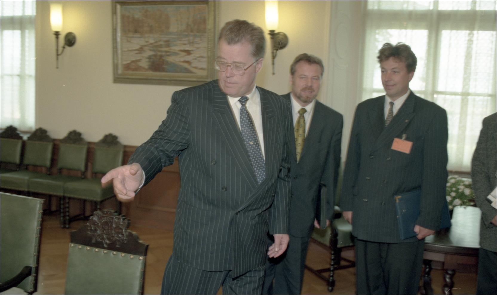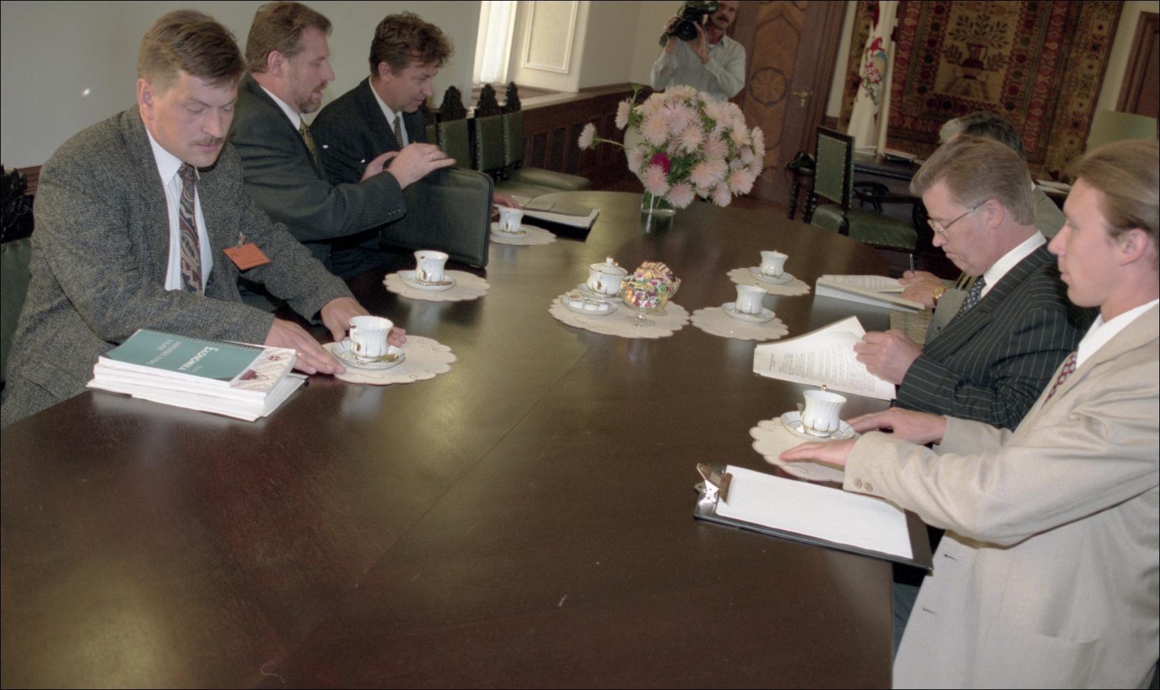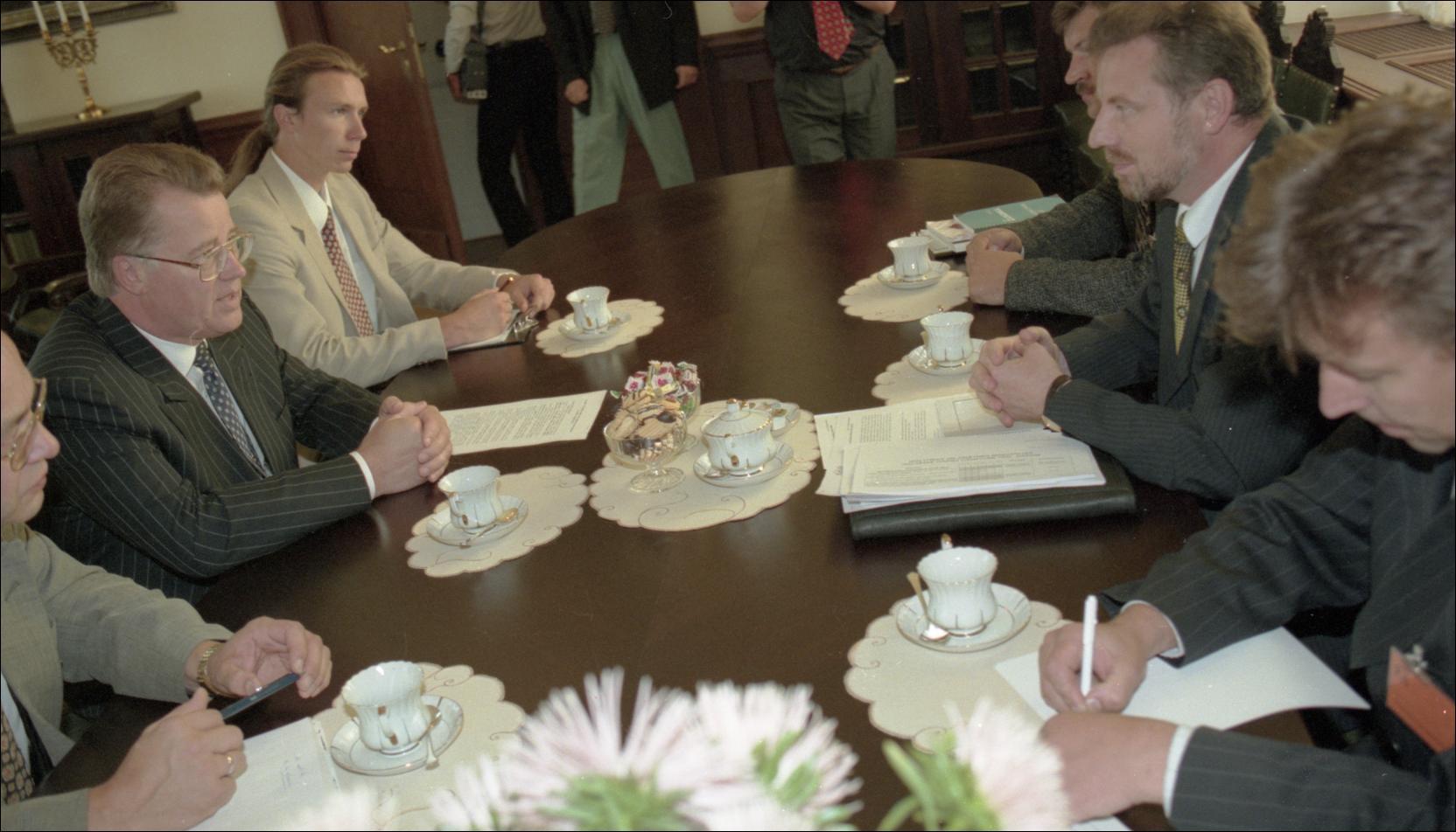 Guntis Ulmanis tiekas ar Juri Celmiņu(pārrunas par izglītību).