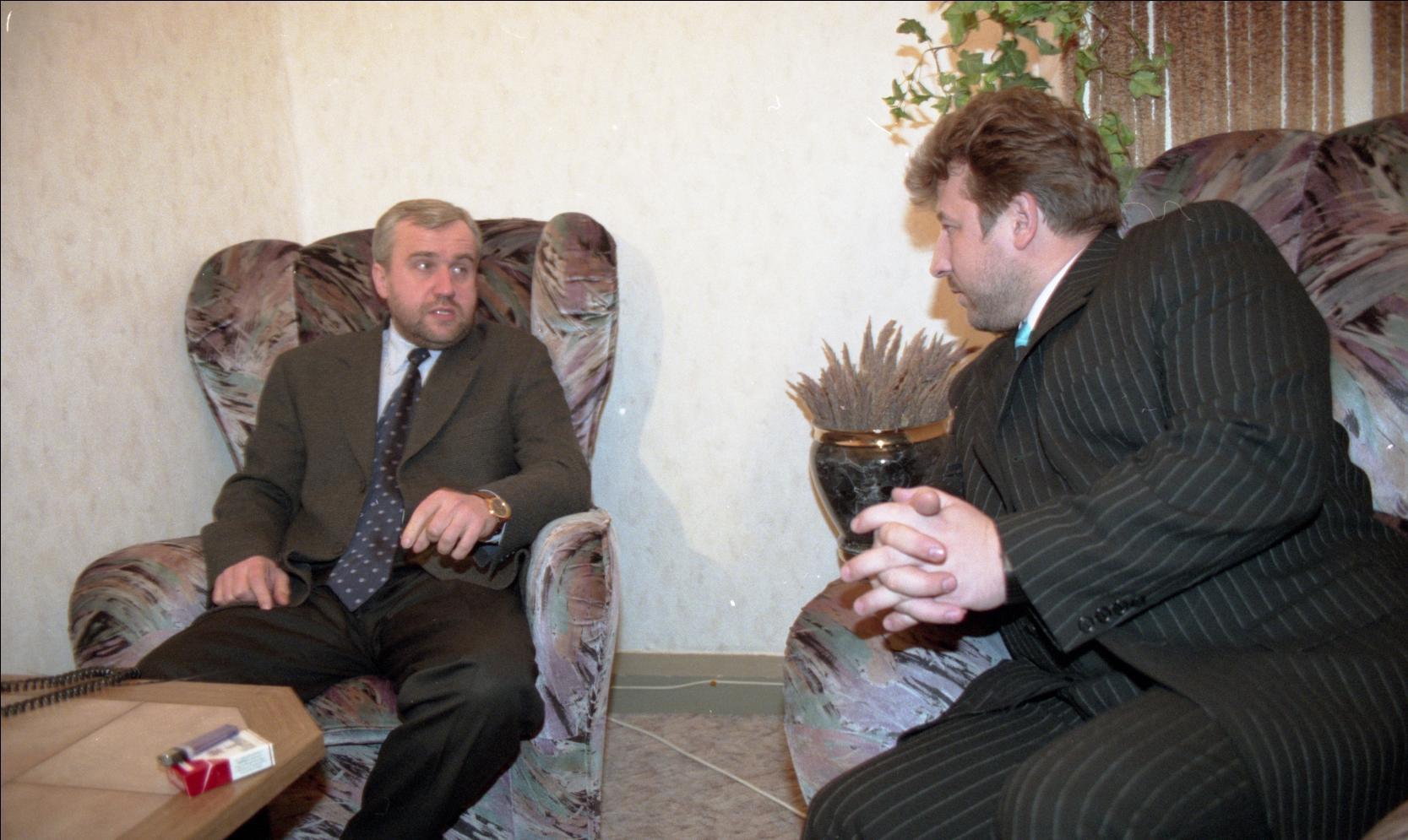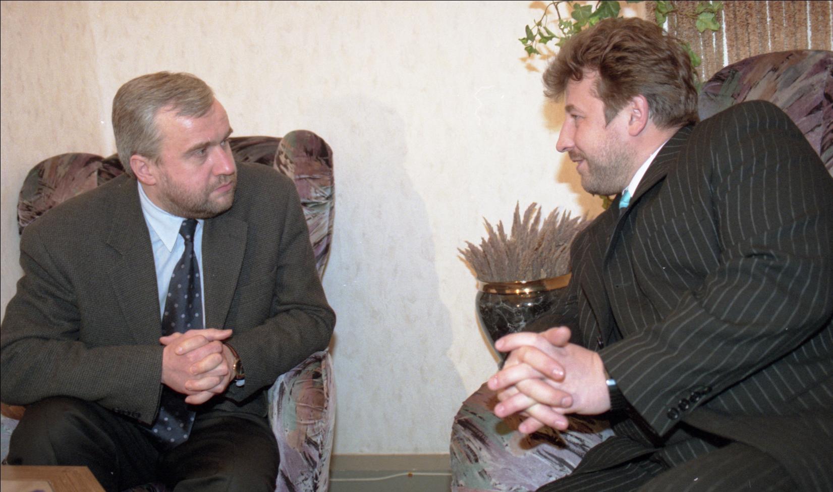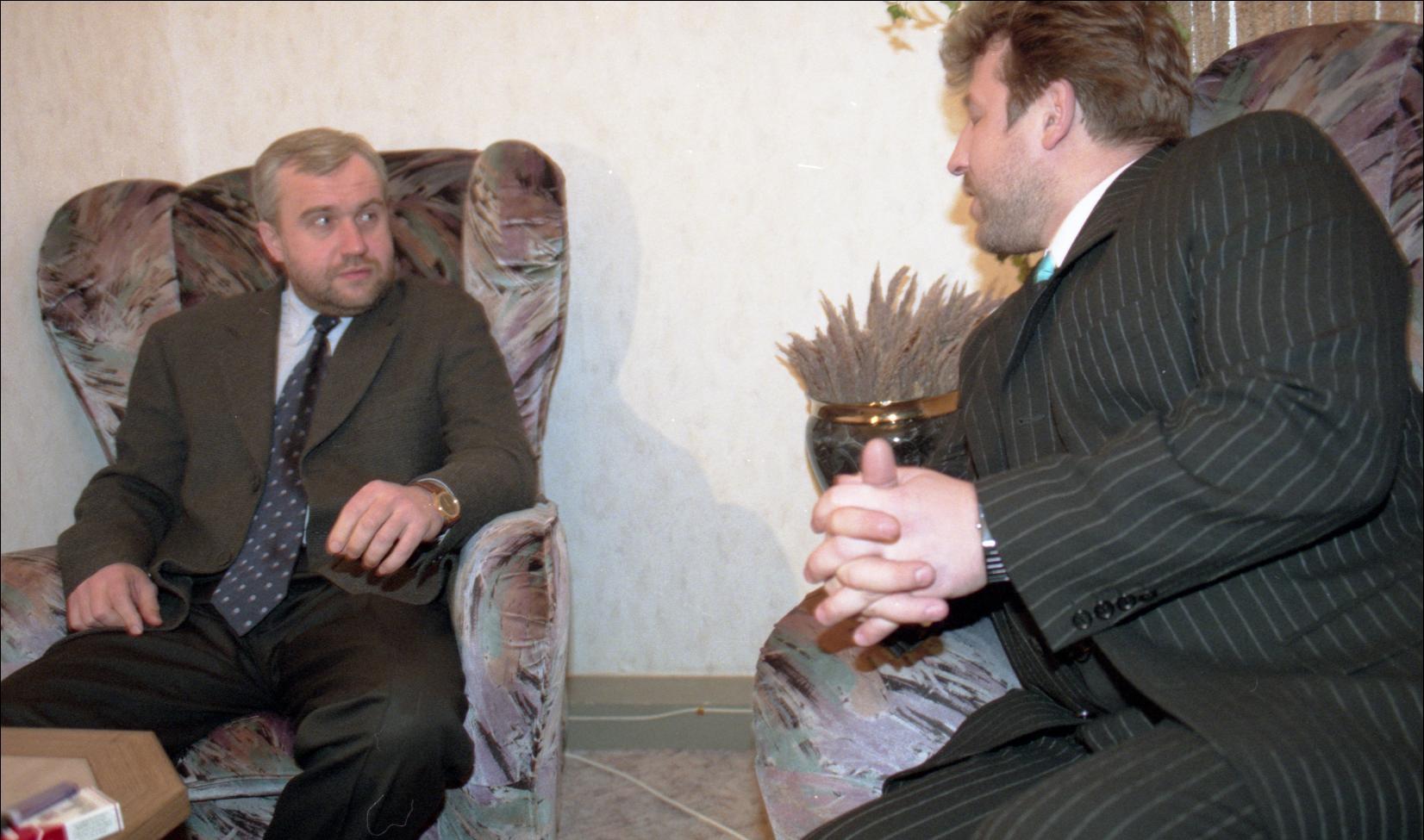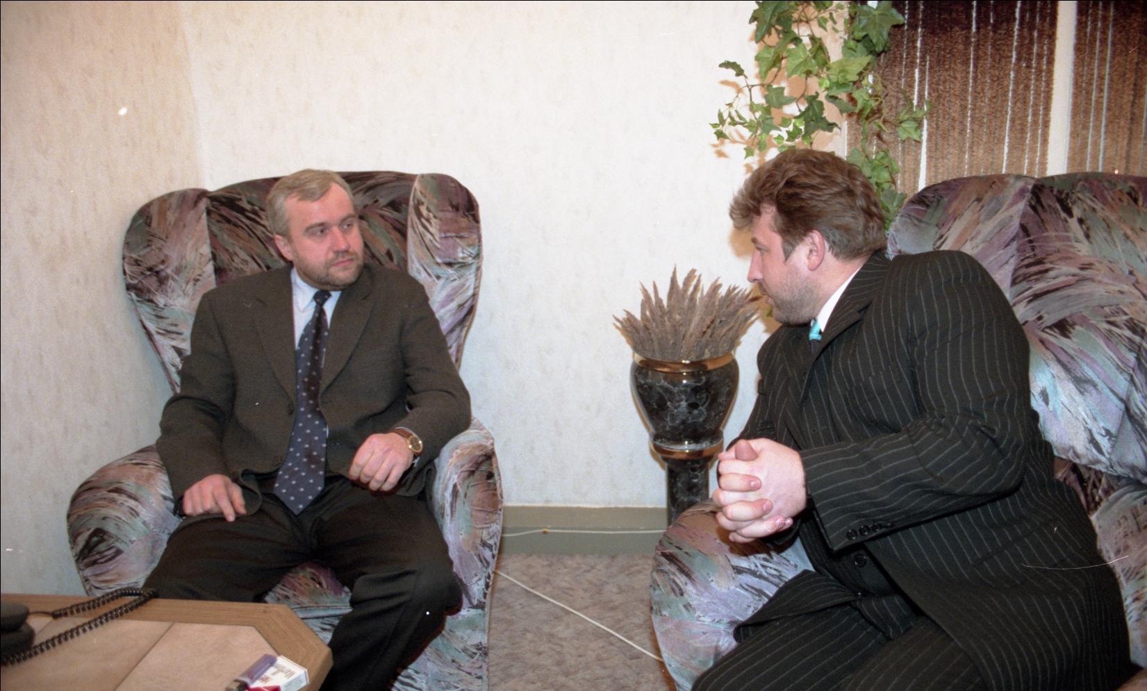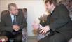Ziedoņa Čevera un Andra Šķēles tikšanās «Saimnieka» frakcijā.