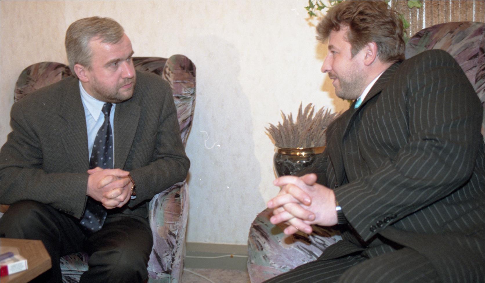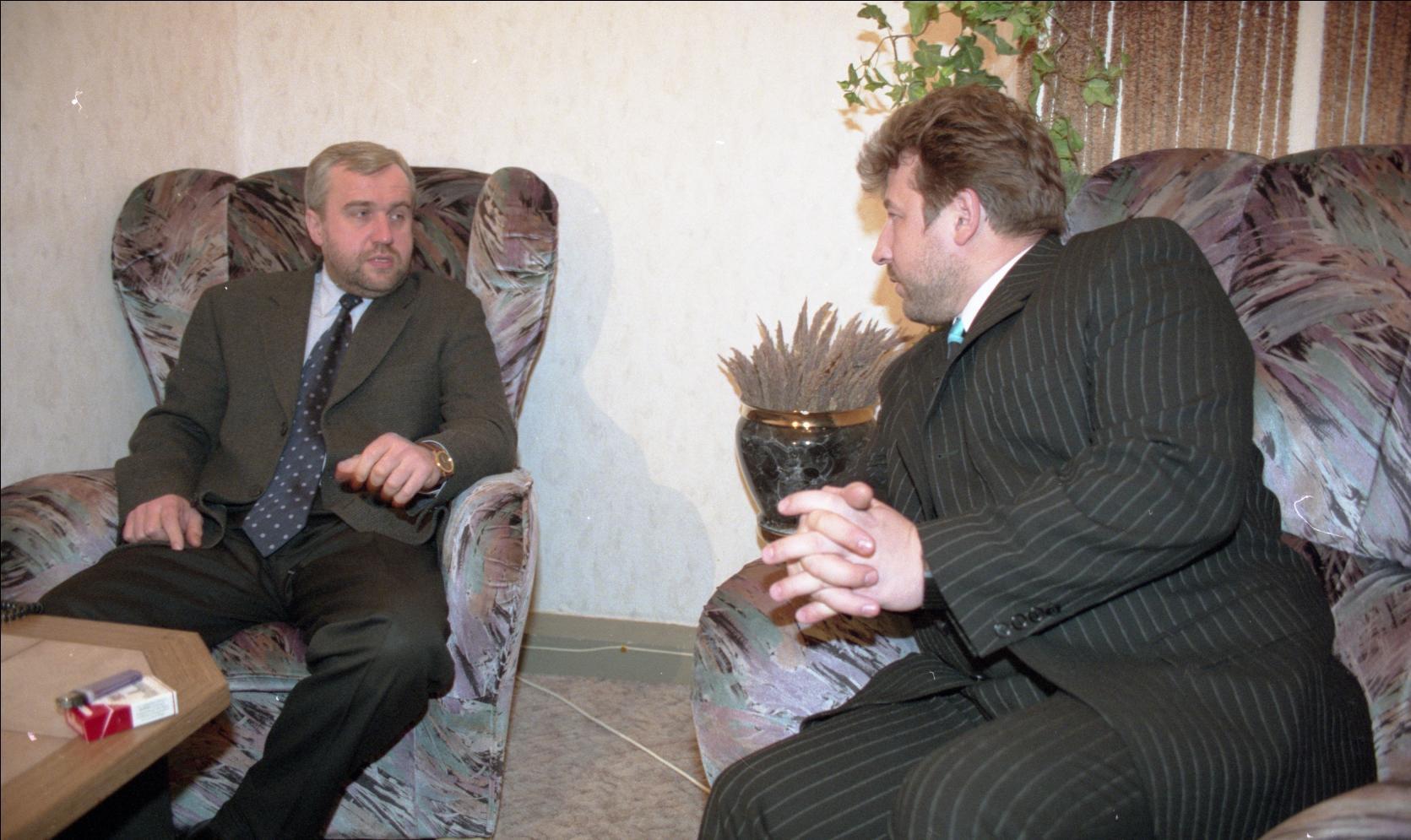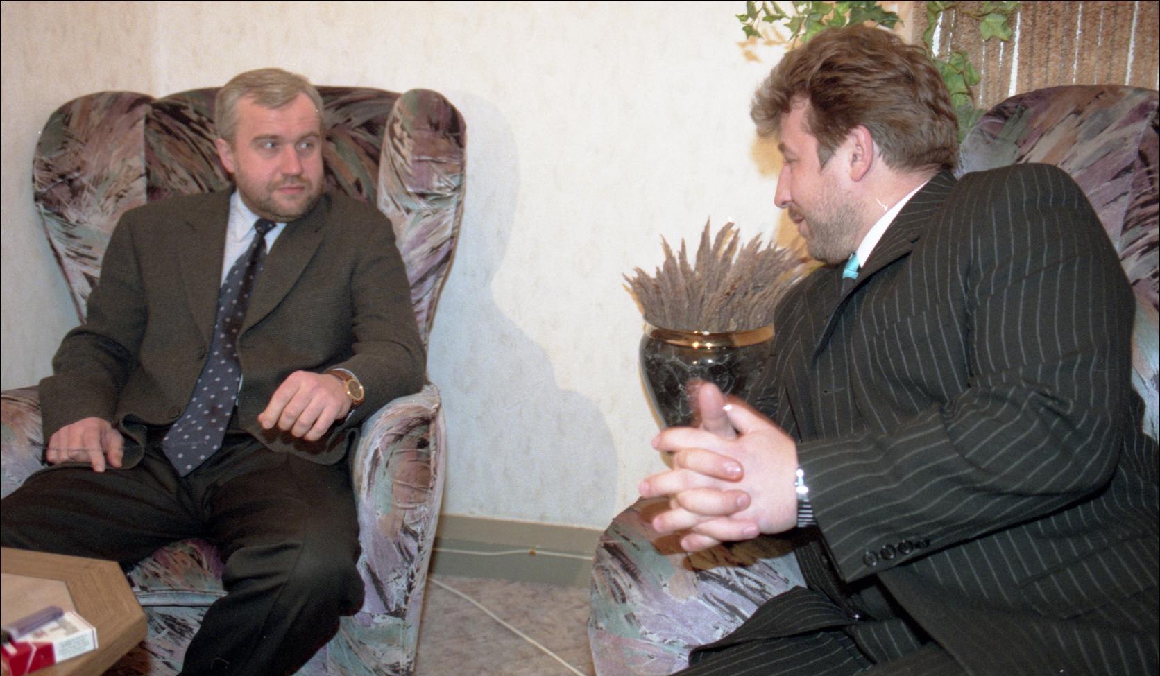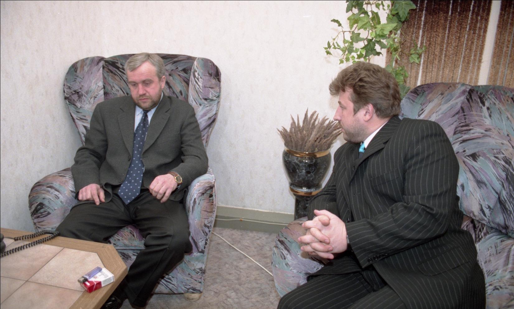 Ziedoņa Čevera un Andra Šķēles tikšanās «Saimnieka» frakcijā.