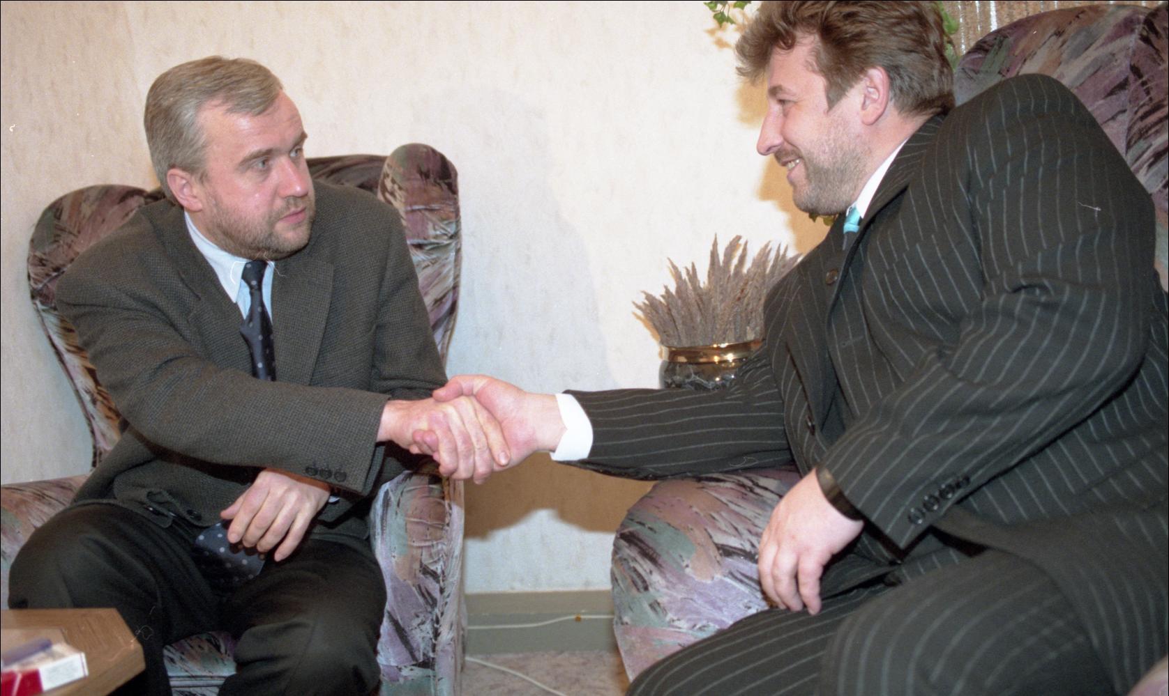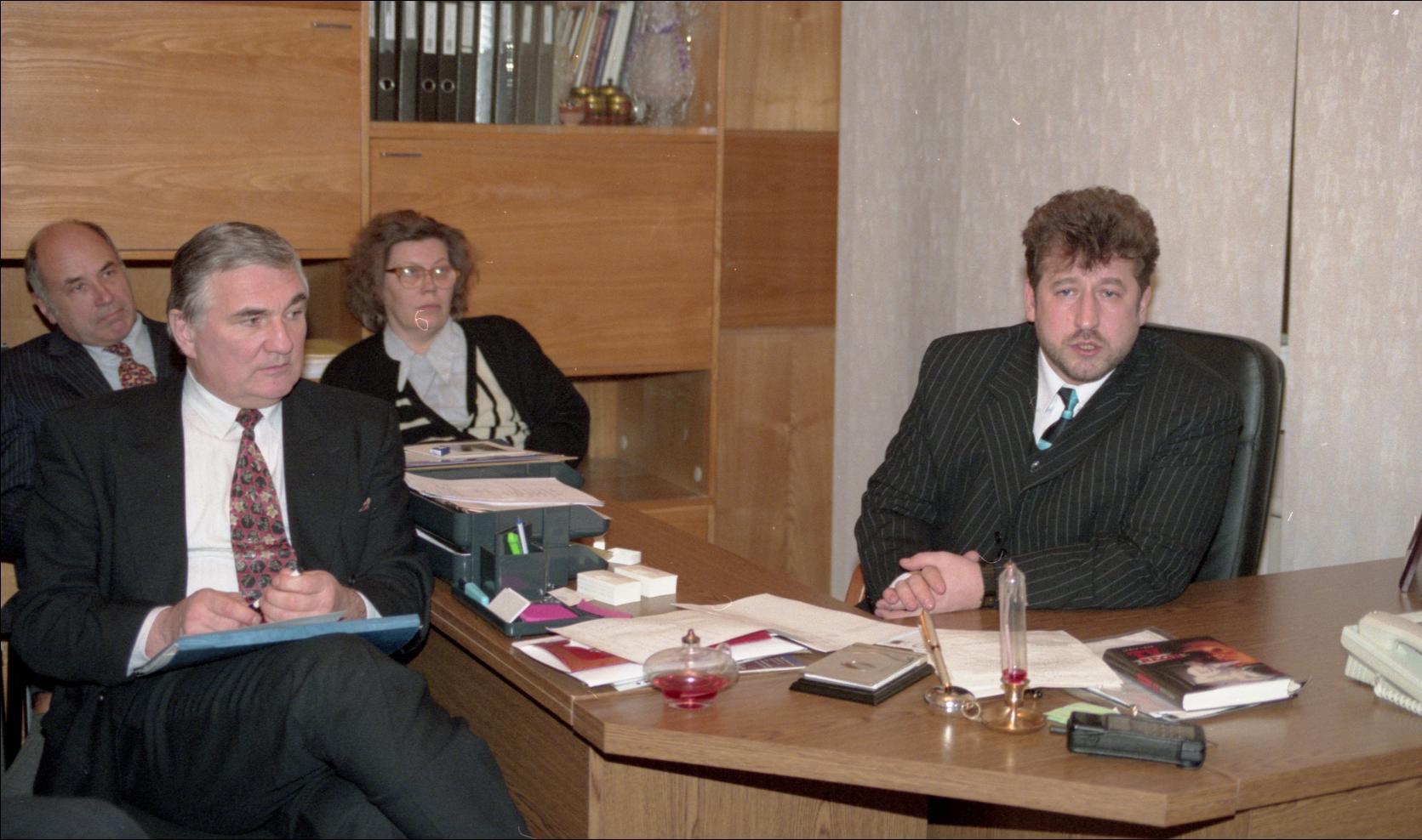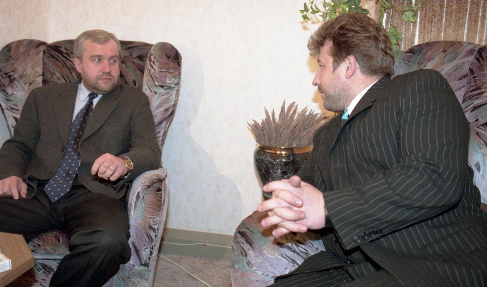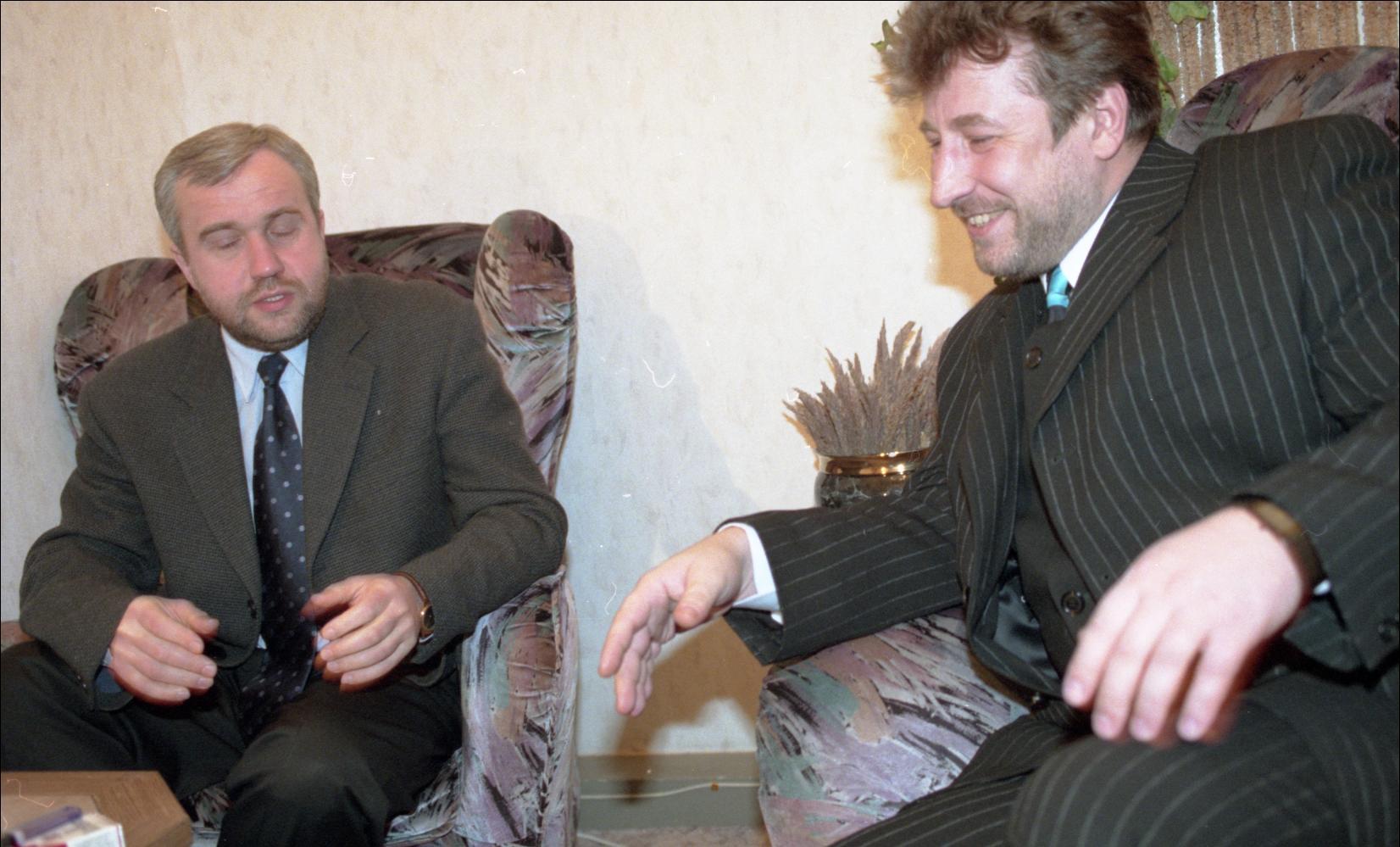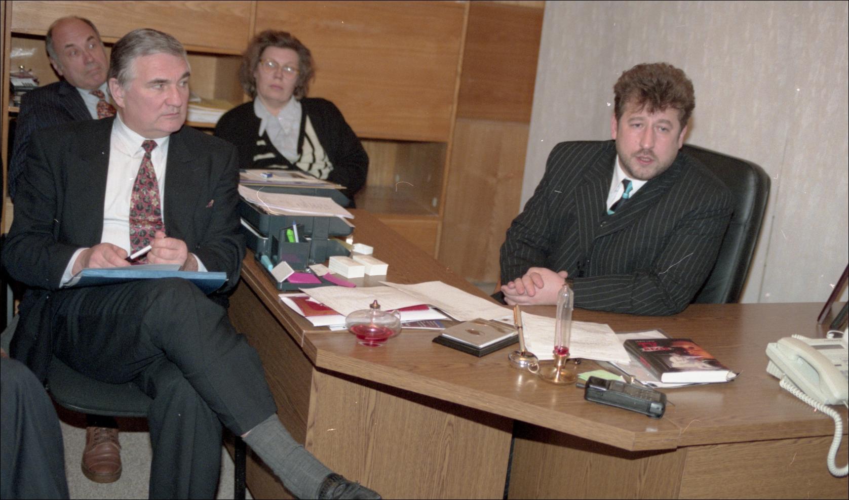 Ziedoņa Čevera un Andra Šķēles tikšanās «Saimnieka» frakcijā.