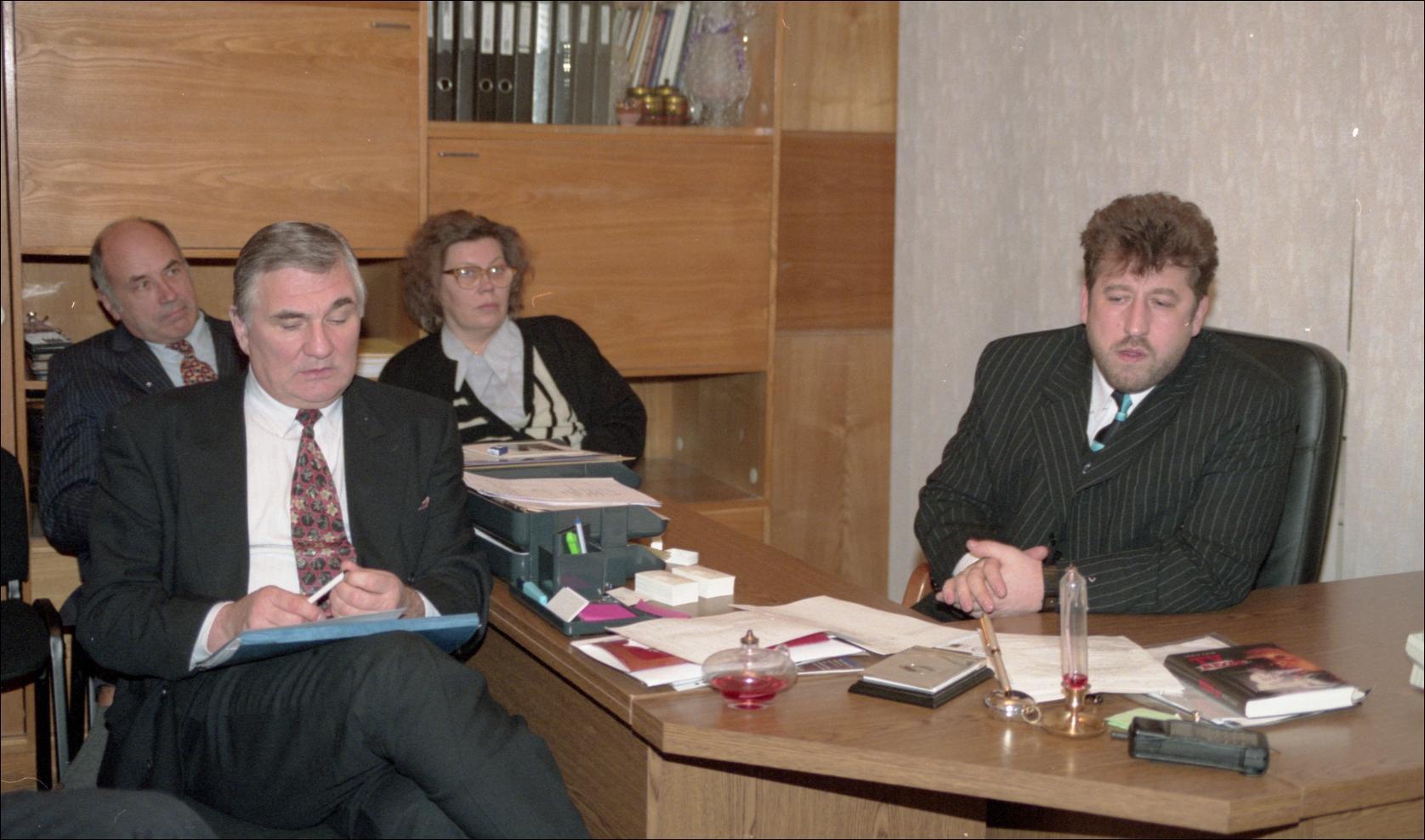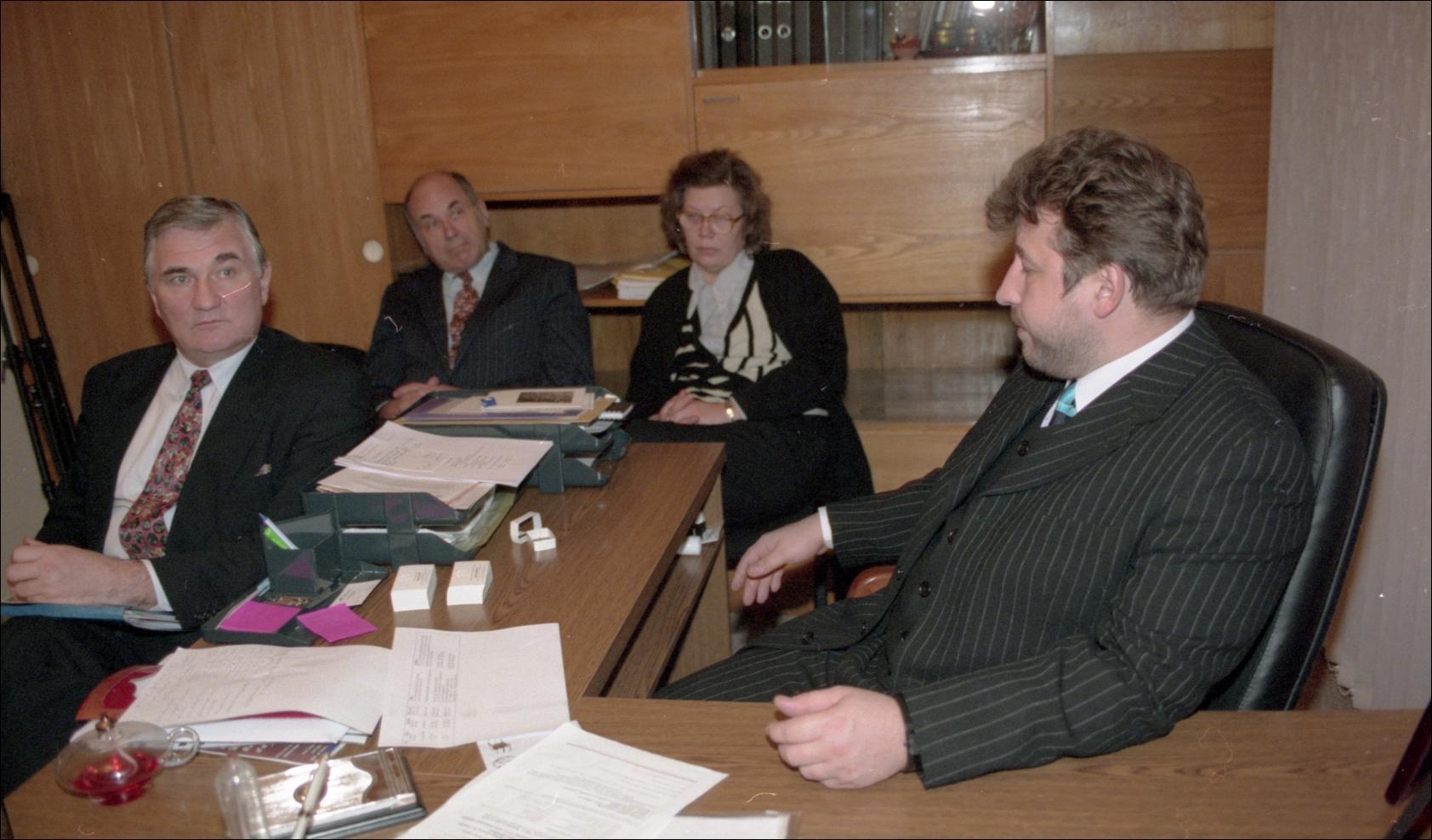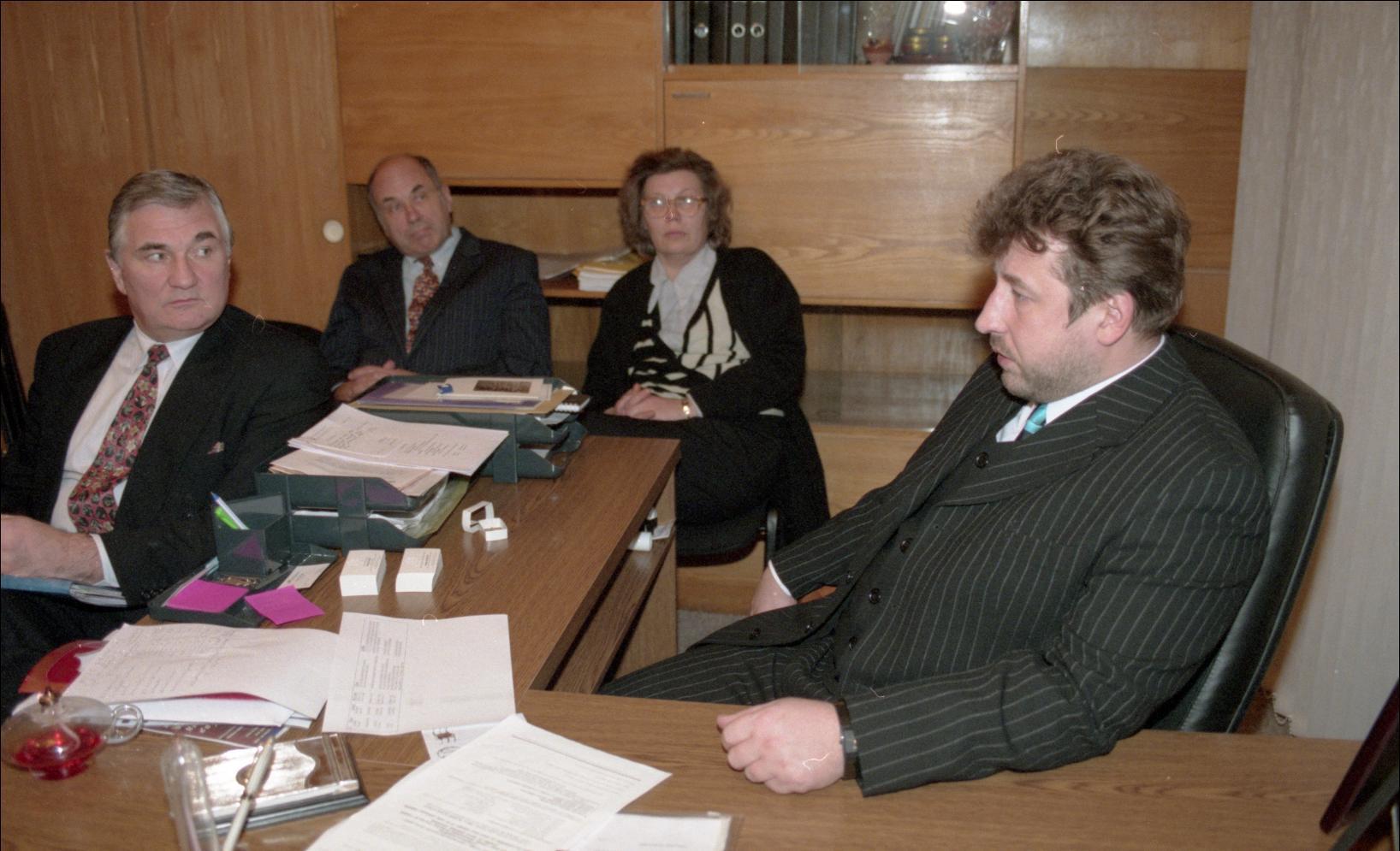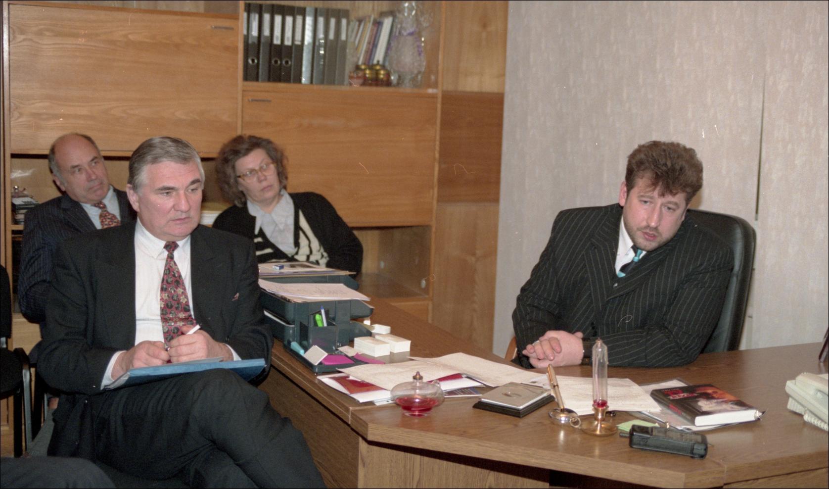 Ziedoņa Čevera un Andra Šķēles tikšanās «Saimnieka» frakcijā.