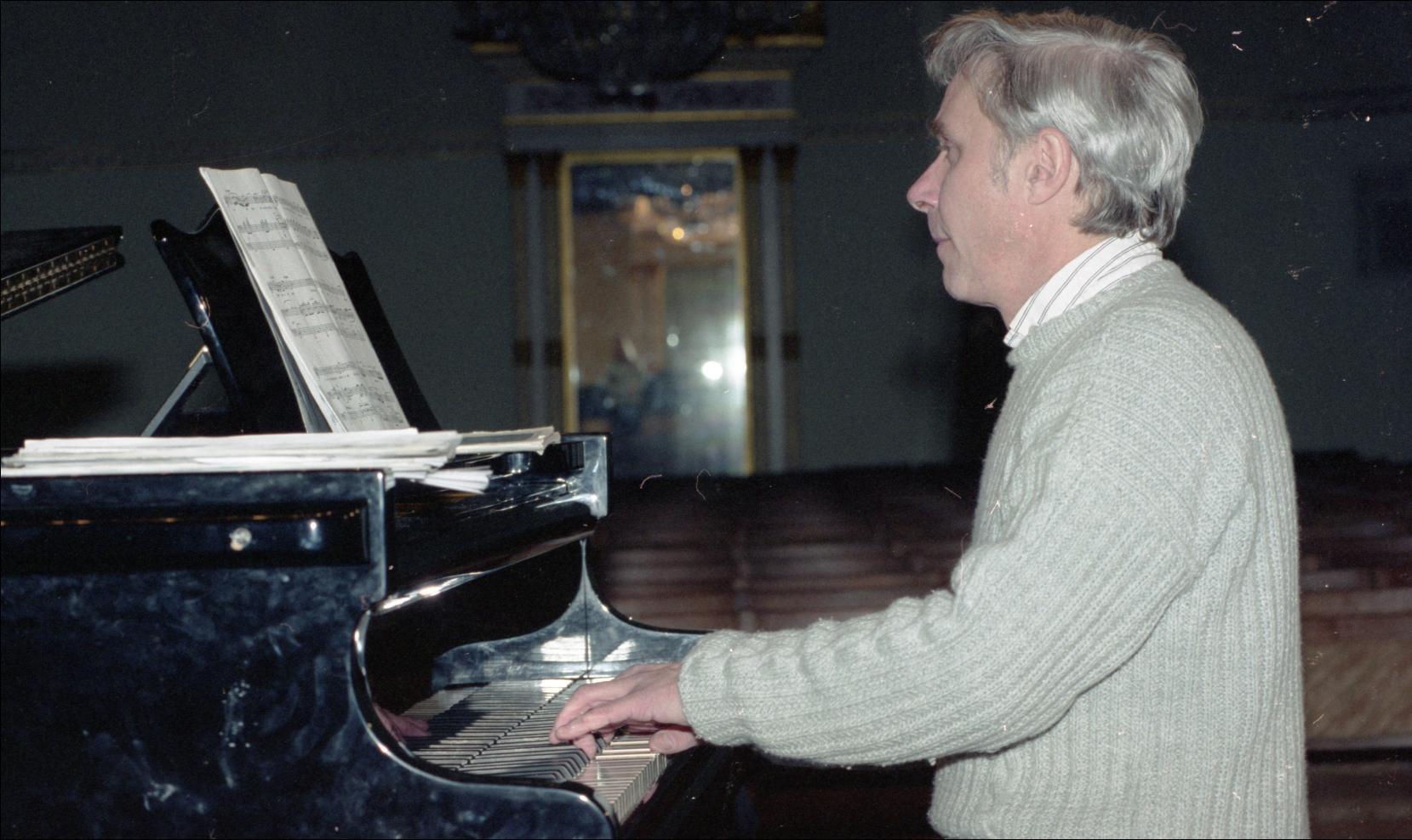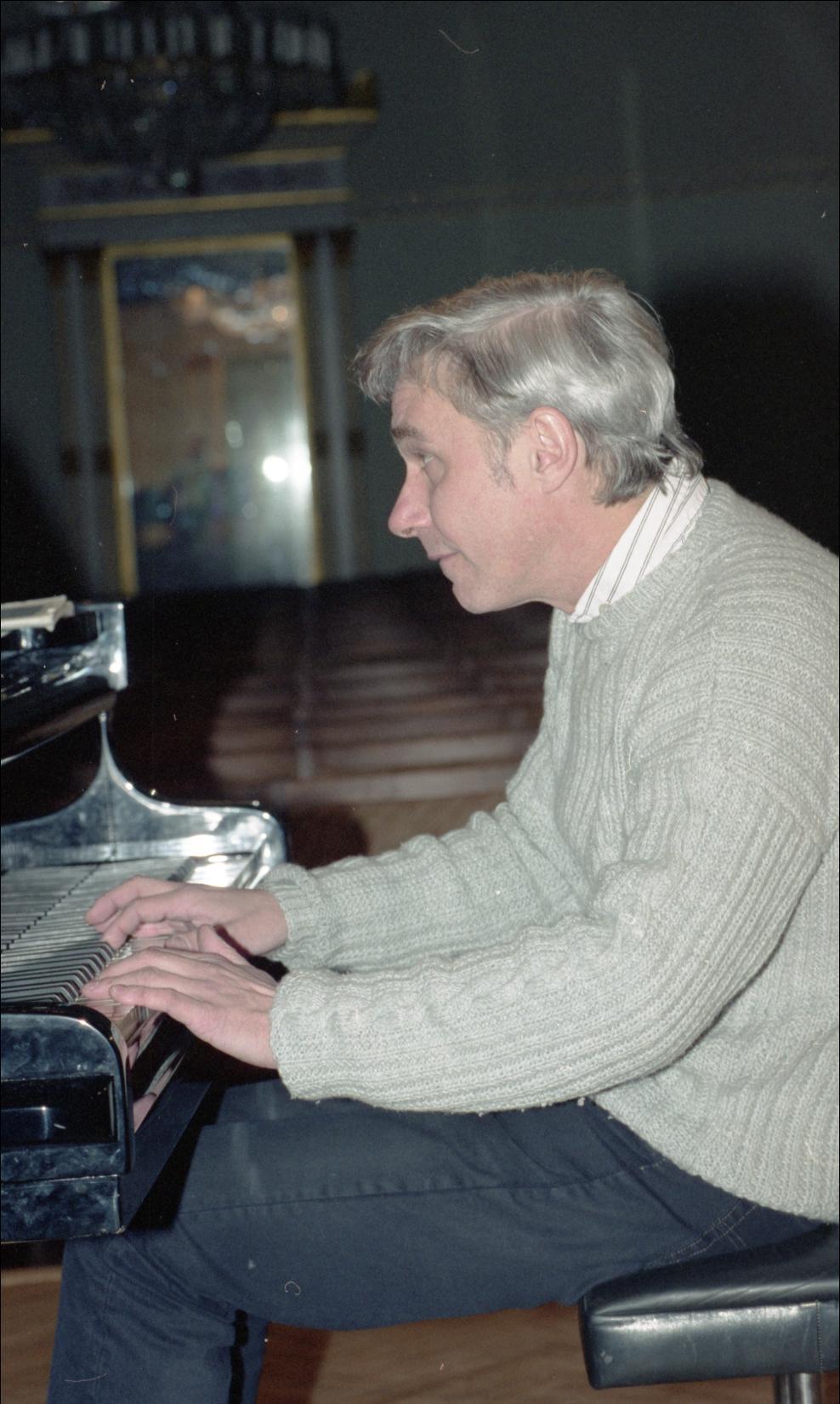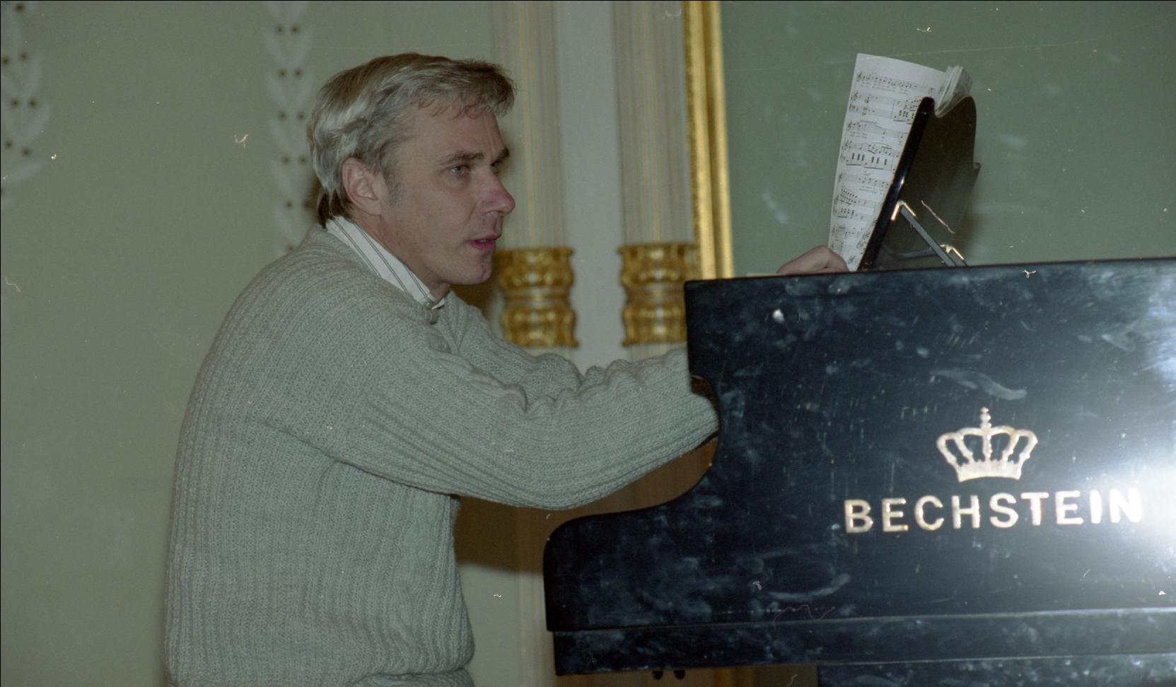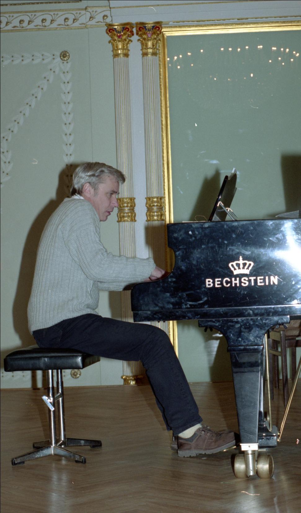 Komponists Pēteris Plakidis, Inga Kalna, Ludmila Brauna mēģinājumā Vāgnera zālē.