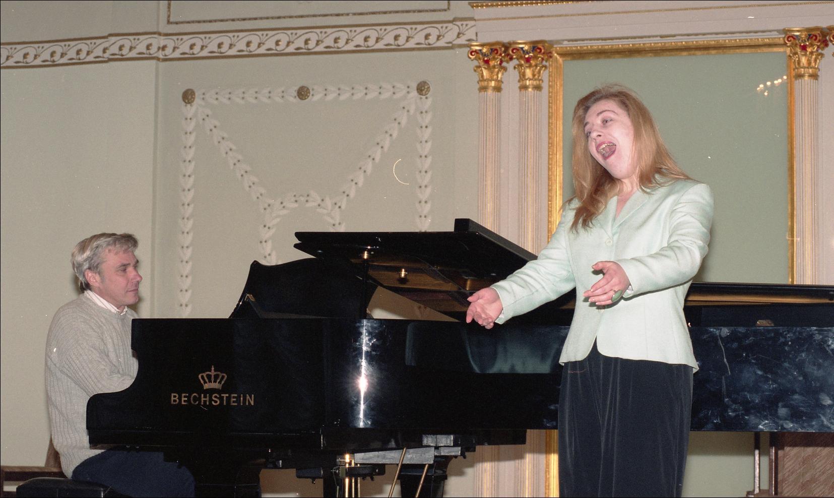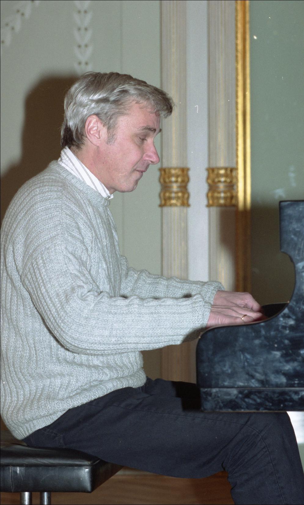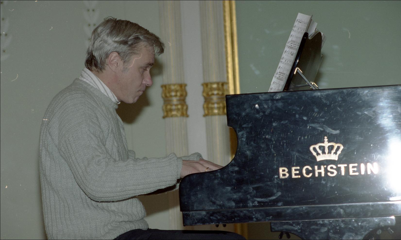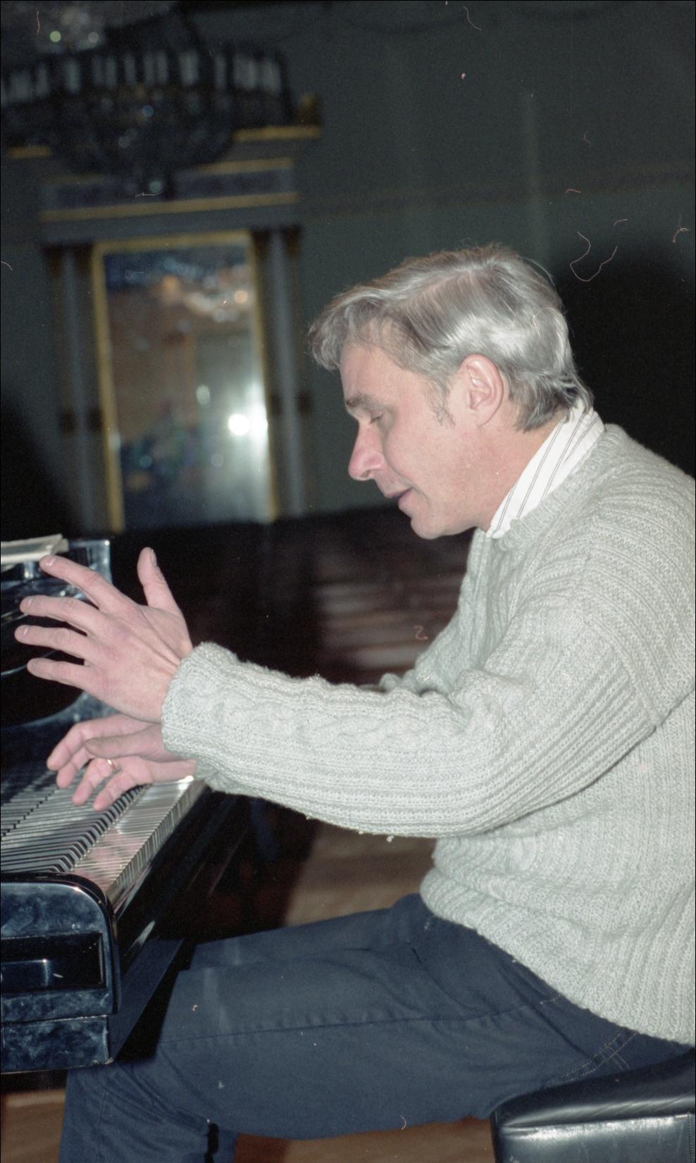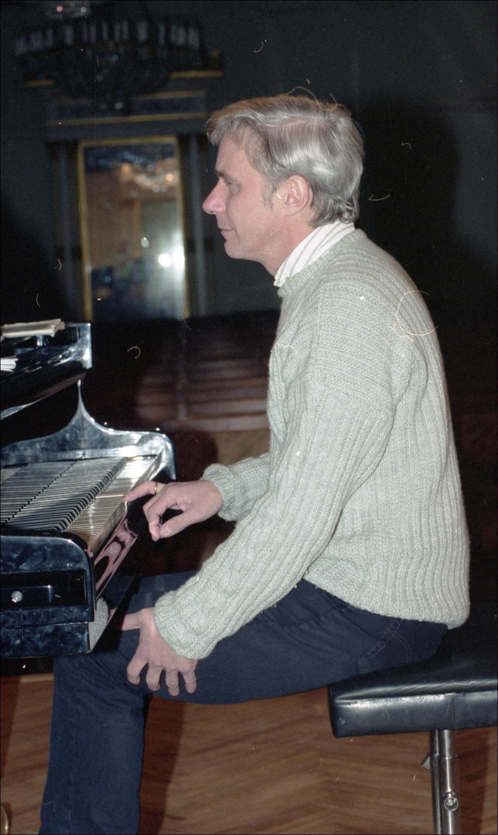 Komponists Pēteris Plakidis, Inga Kalna, Ludmila Brauna mēģinājumā Vāgnera zālē.