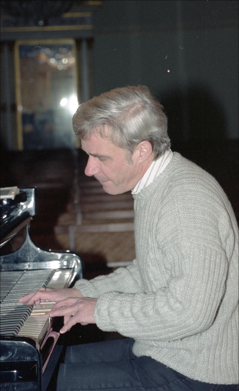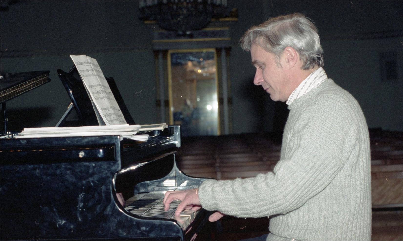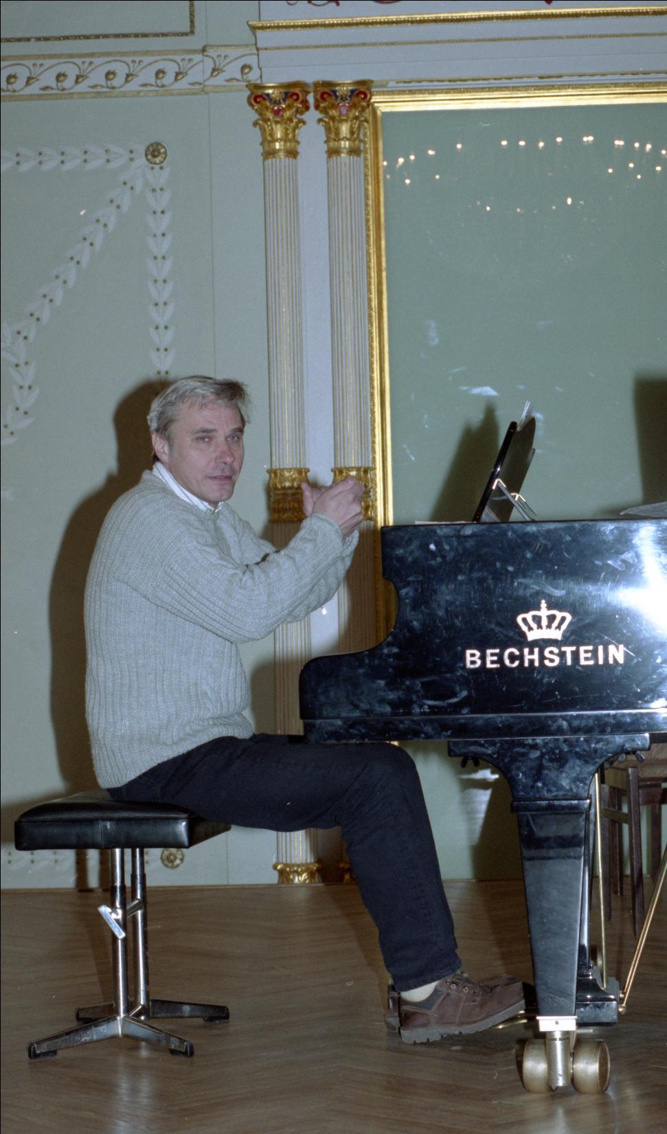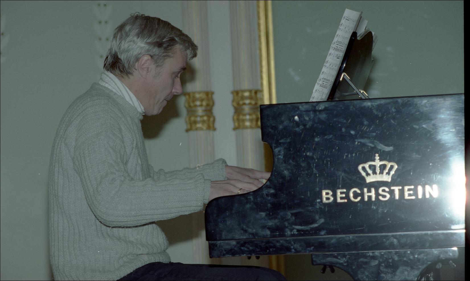 Komponists Pēteris Plakidis, Inga Kalna, Ludmila Brauna mēģinājumā Vāgnera zālē.