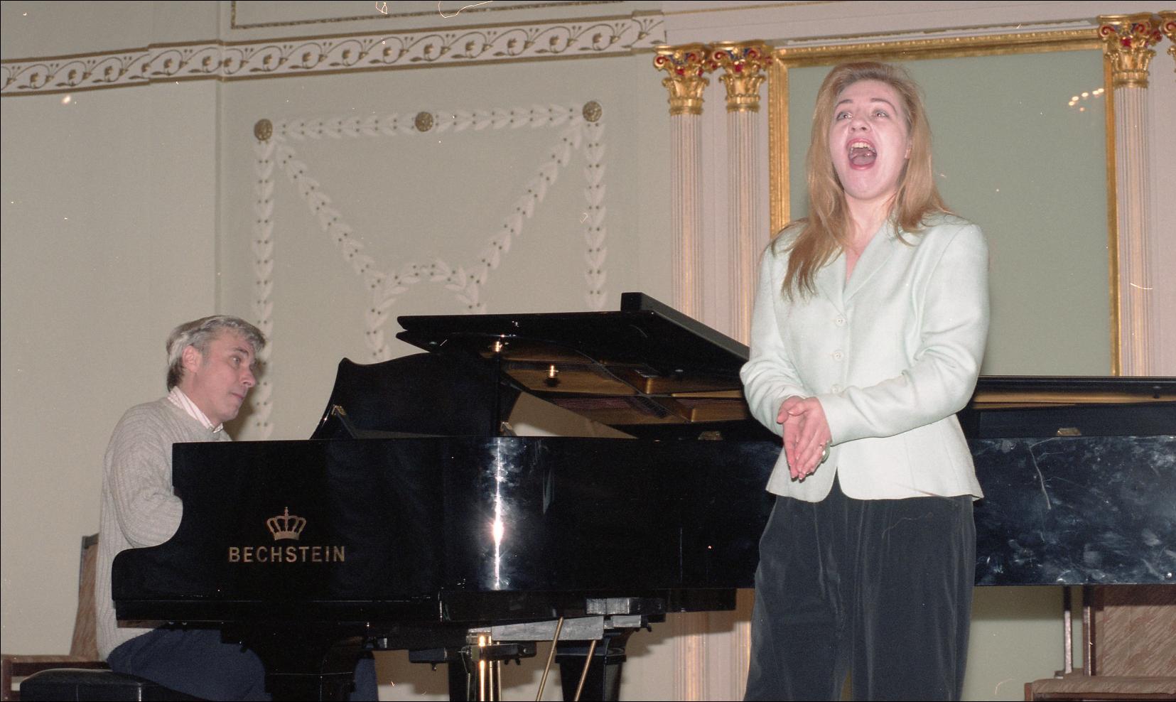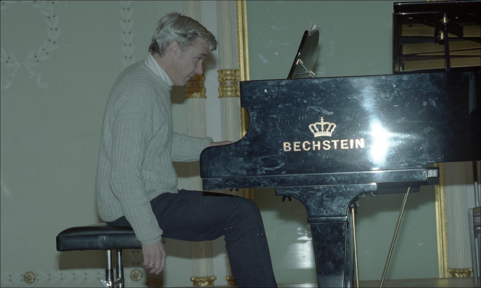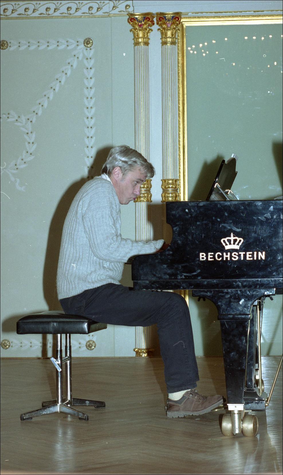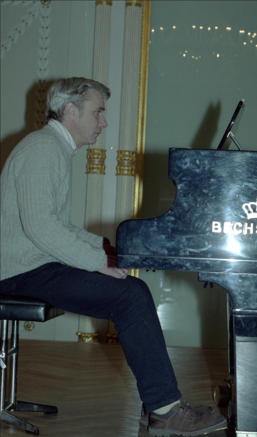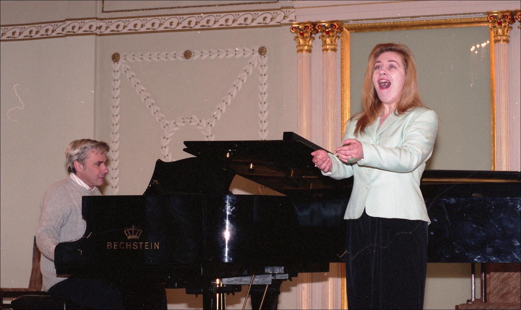 Komponists Pēteris Plakidis, Inga Kalna, Ludmila Brauna mēģinājumā Vāgnera zālē.