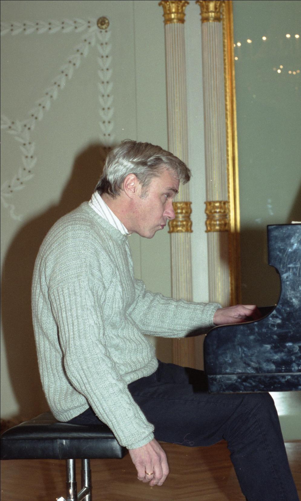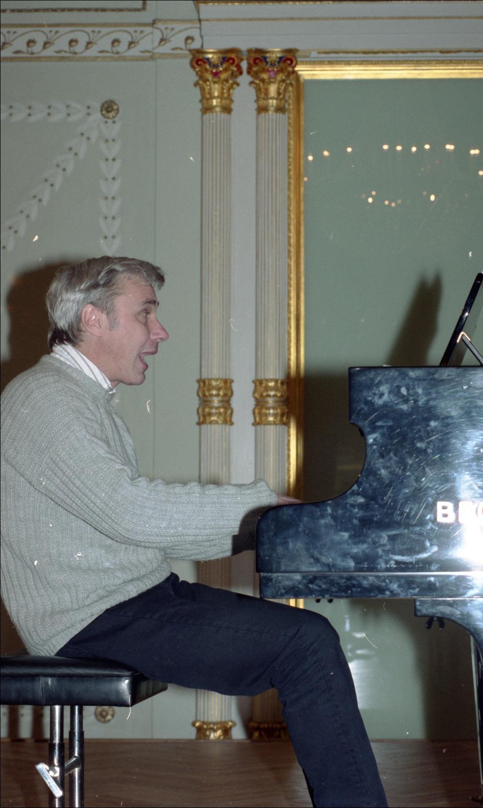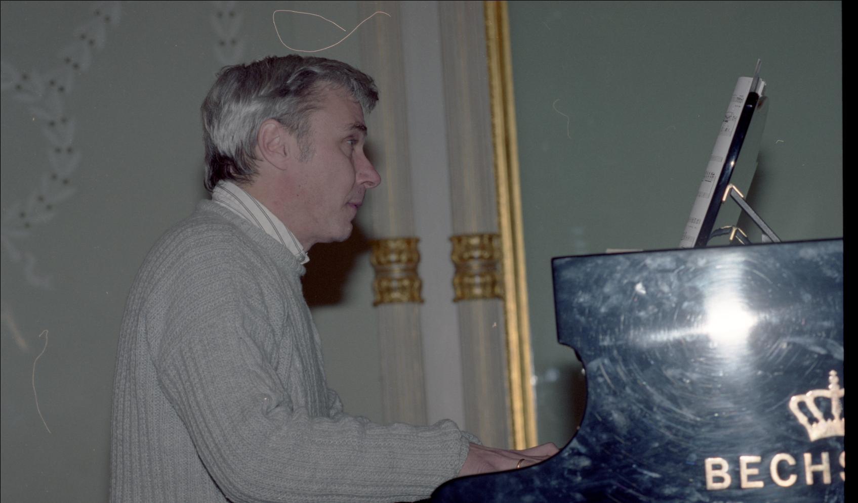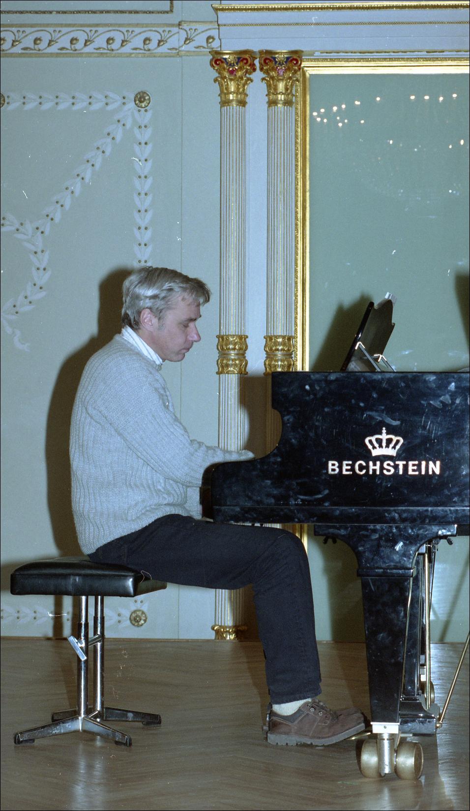 Komponists Pēteris Plakidis, Inga Kalna, Ludmila Brauna mēģinājumā Vāgnera zālē.