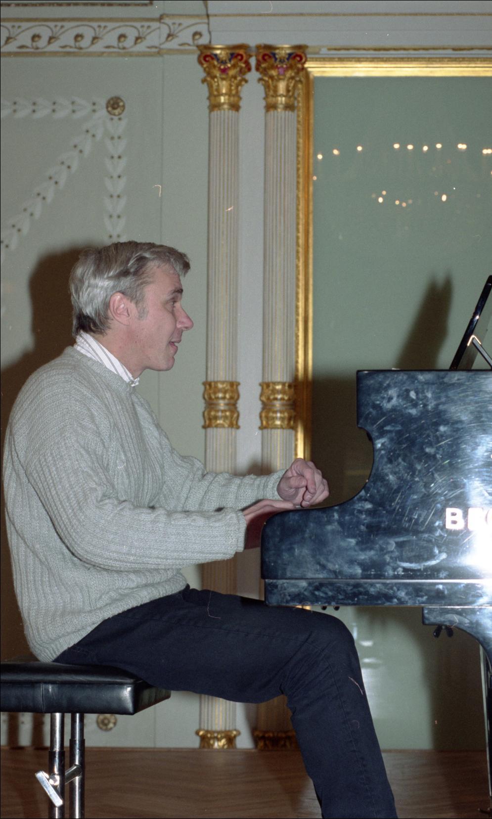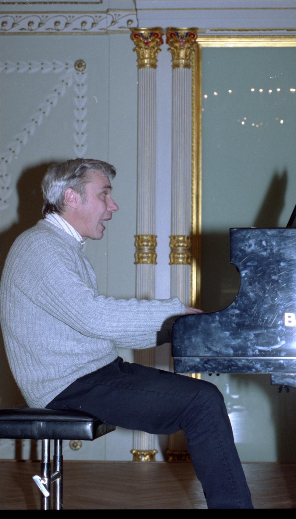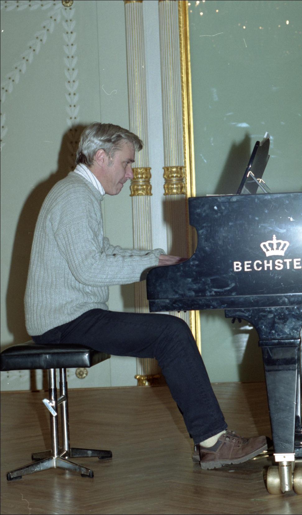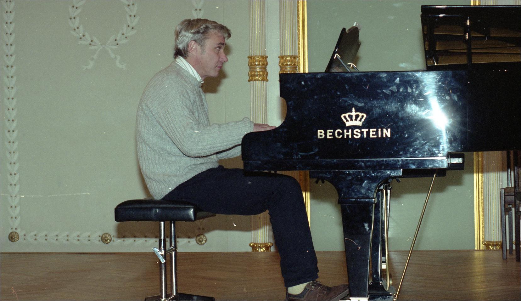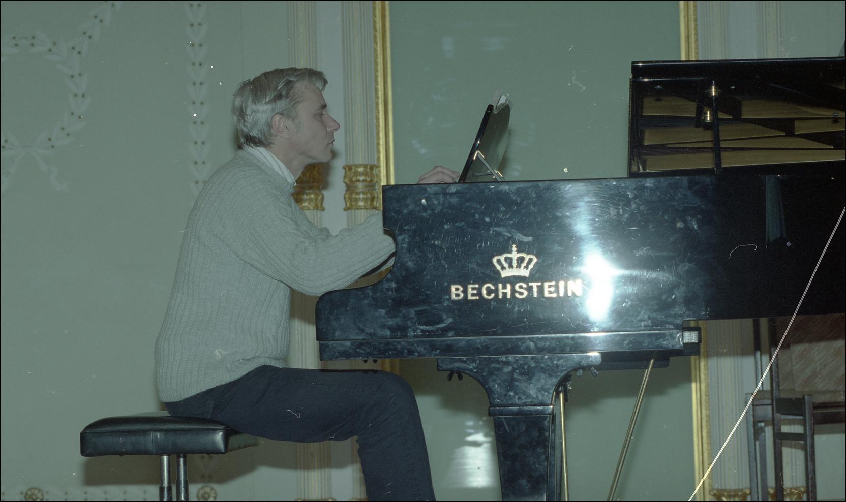Komponists Pēteris Plakidis, Inga Kalna, Ludmila Brauna mēģinājumā Vāgnera zālē.