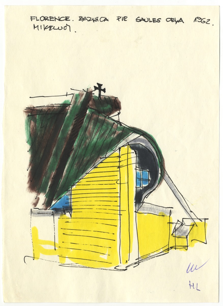 Pārzīmēti modernās arhitektūras objekti. Skices
