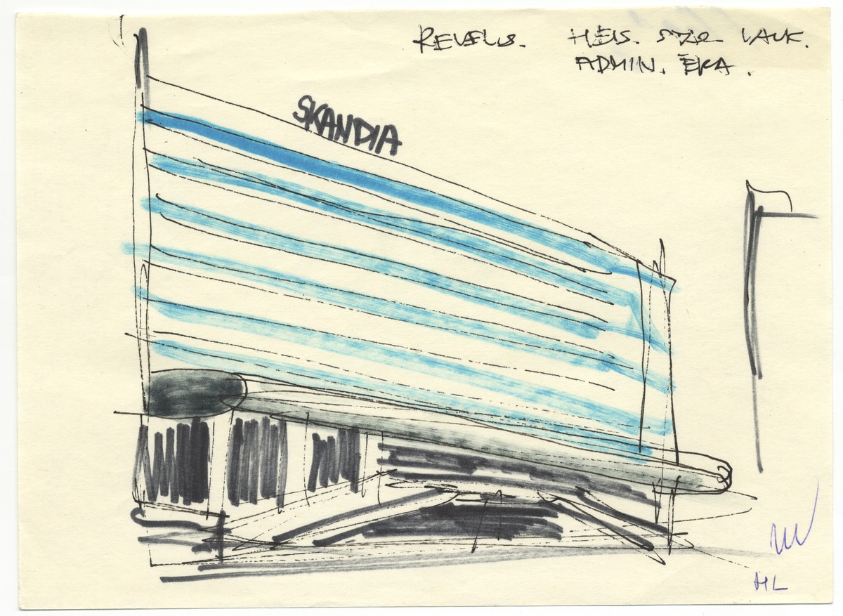 Pārzīmēti modernās arhitektūras objekti. Skices