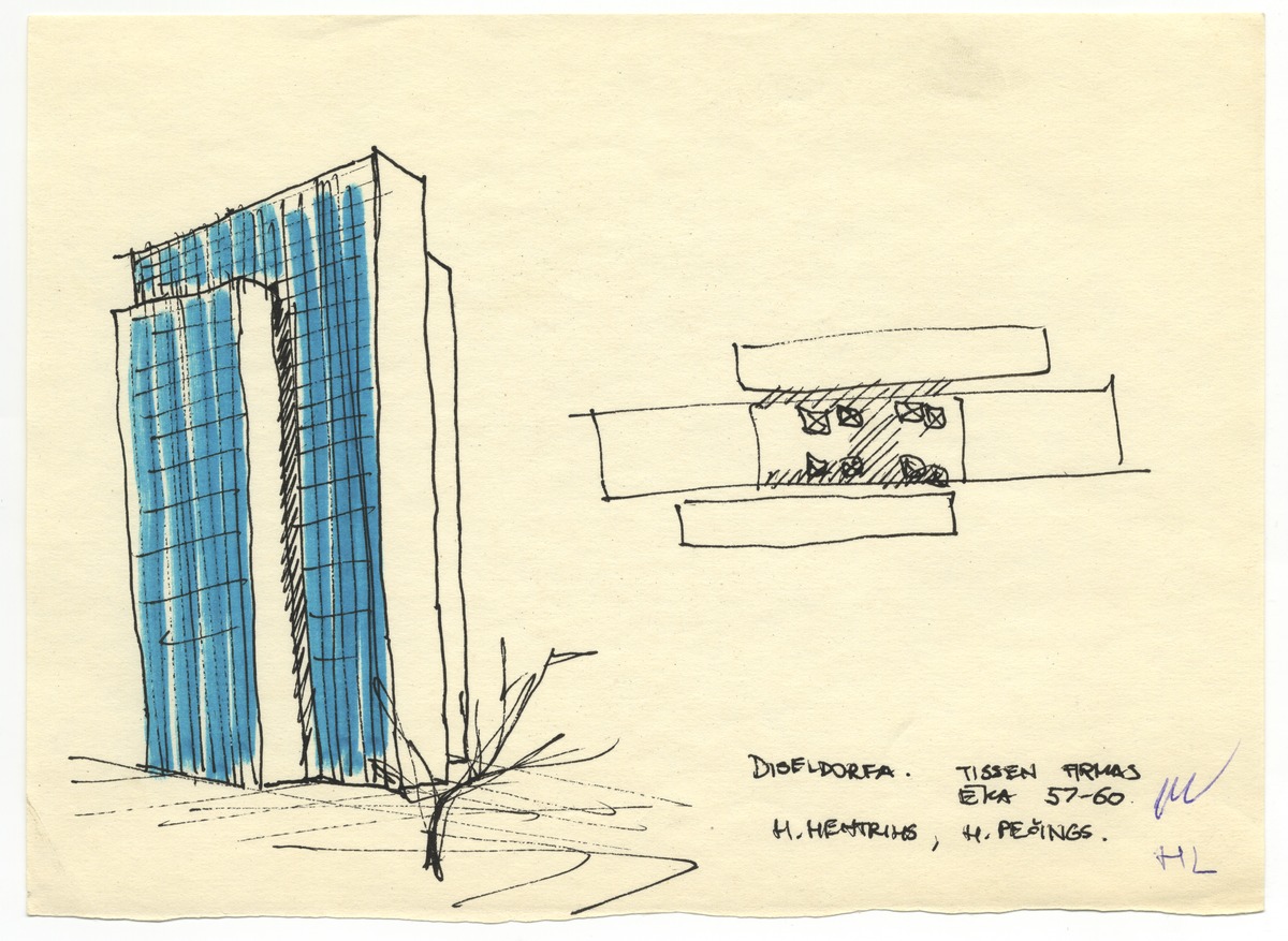 Pārzīmēti modernās arhitektūras objekti. Skices
