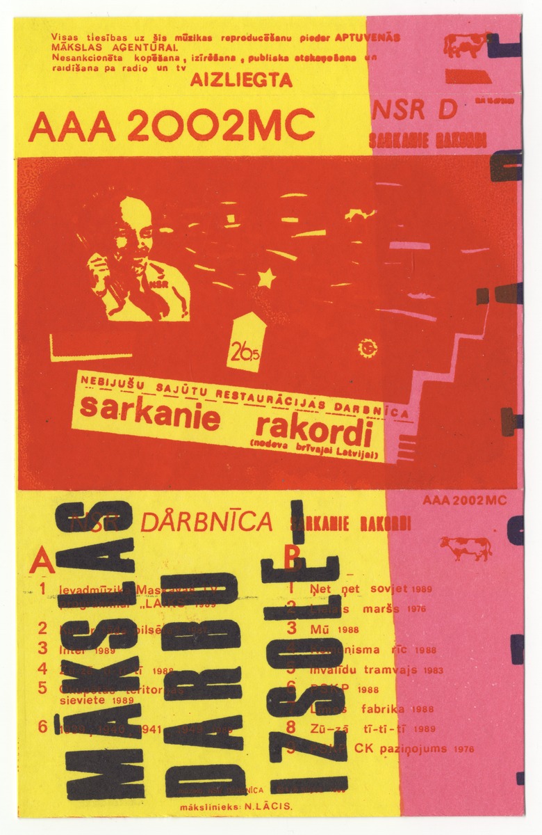 NSRD kasetes vāciņa vizualais noformējums. "Sarkanie rakordi" /Seque, 1989. Mākslinieks Normunds Lācis (Variants)