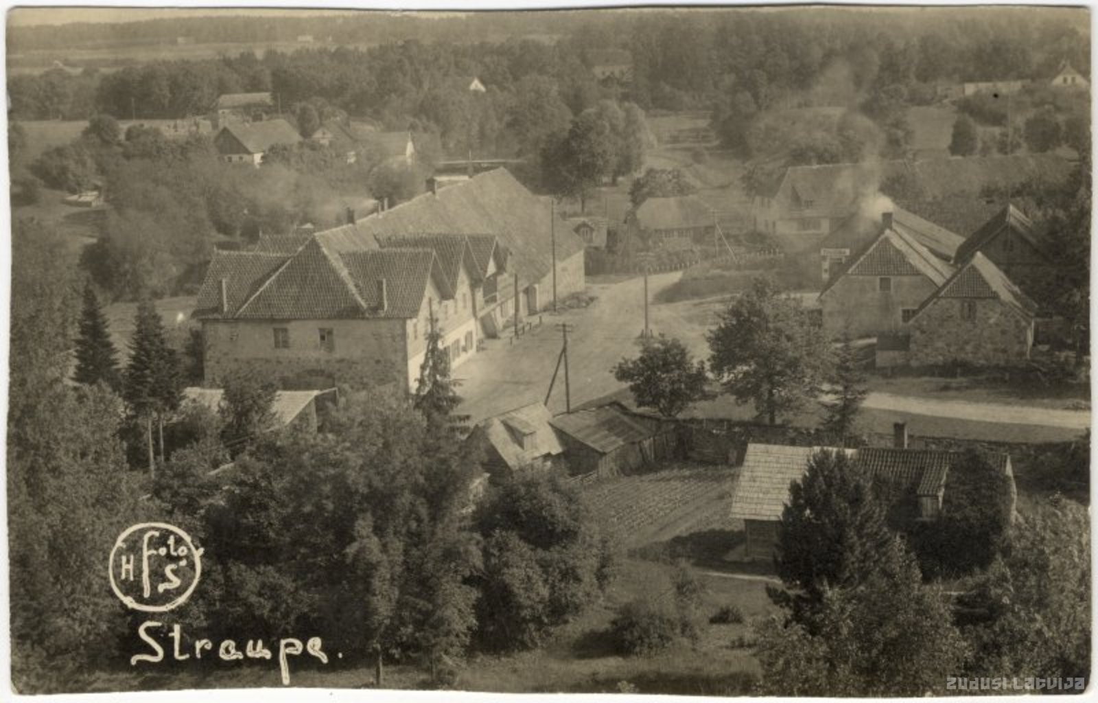Skats no Lielstraupes pils uz Pilskrogu, Valmieras lielceļu, Braslas ieleju un Mazstraupi tālumā