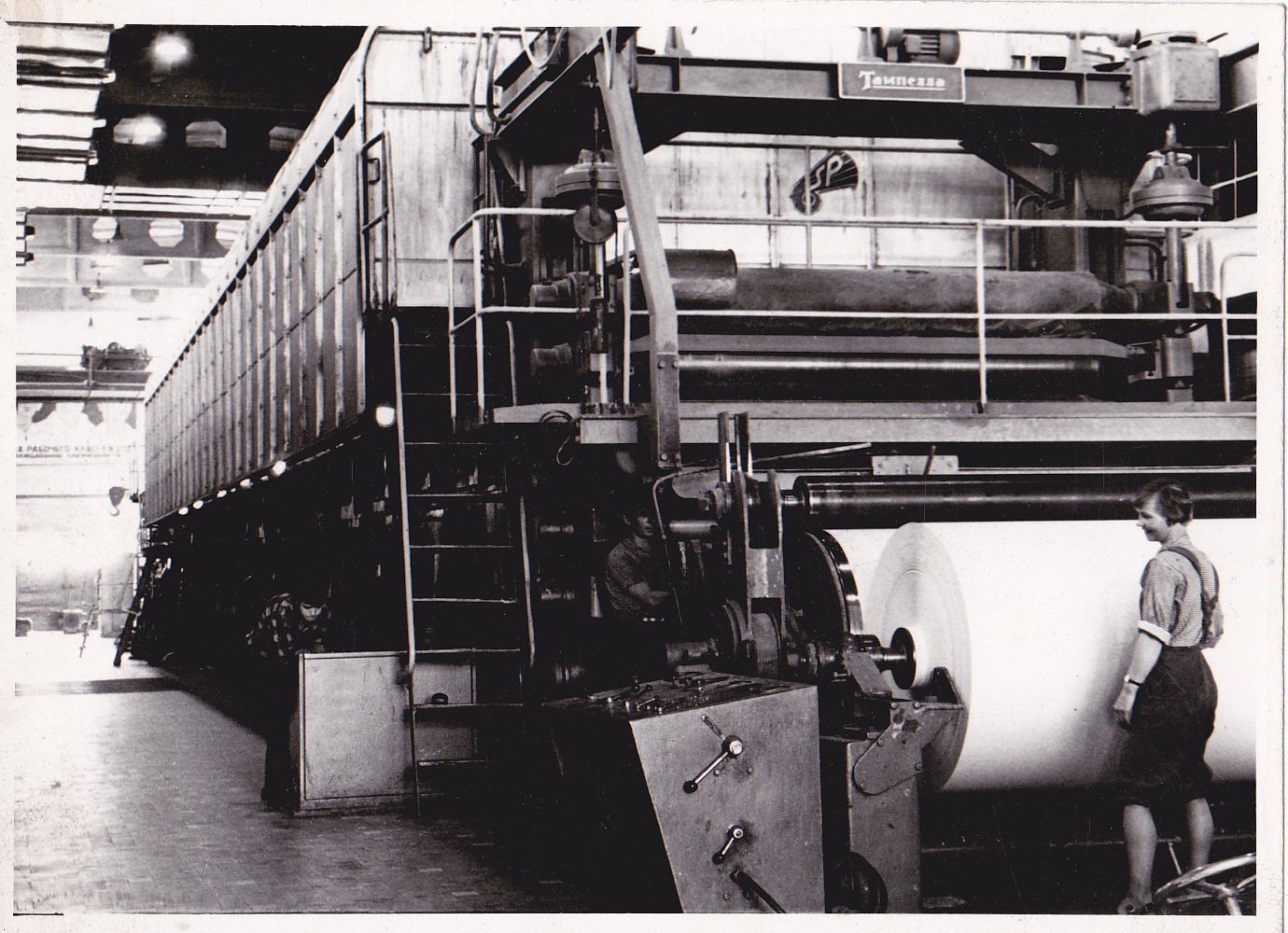 Strādnieks pe 7.papīrmašīnas ruļļa.