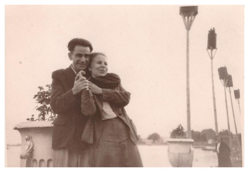 Slokas CPK strādnieki stāv kombināta parkā, fonā Lielupes krasts, gar krastu garā rindā augstās kārtīs iestiprinātas mucas jāņuguns dedzināšanai.Tā bija pēdējā atļautā Jāņu svinēšana.
