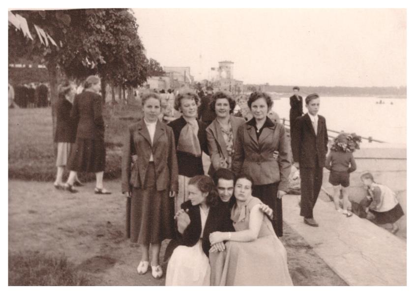 Slokas CPK strādnieku grupa stāv kombināta parkā, fonā daudz ļaužu. Redzams Lielupes krasts, gar krastu labiekārtota promenāde, koku aleja.Tālumā kombināta ēkas. Tā bija pēdējā atļautā Jāņu svinēšana. Kombināta parks ar vaļēju estrādi tika atklāts 1954.