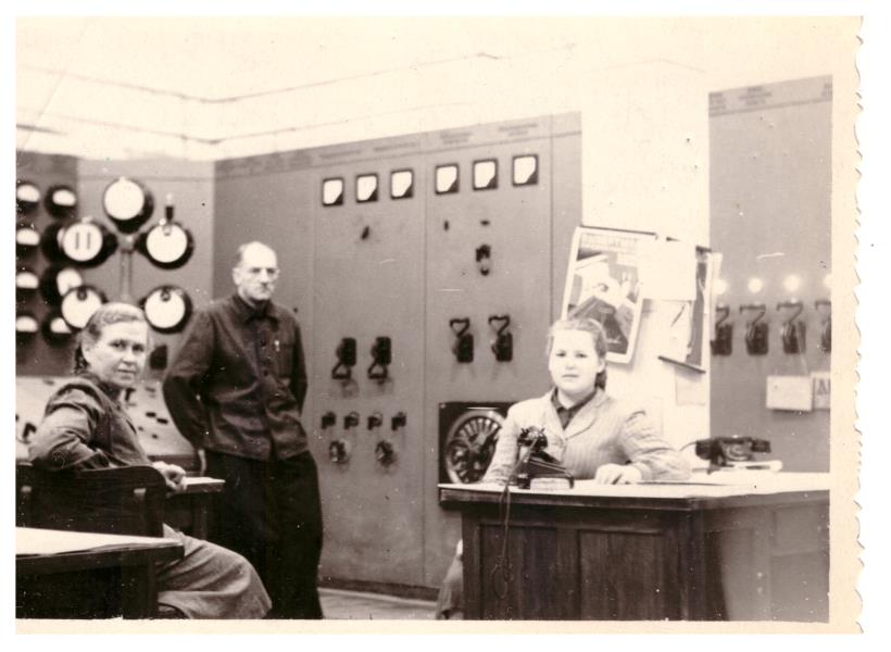 Slokas CPK TEC vadības pults un darbinieki, no kreisās E.Vasiļevska, Vegners, U.Rosicka