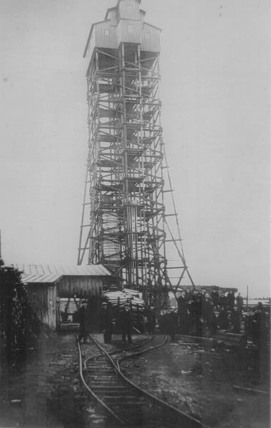 Skats uz torni, sliedes ved uz torni, labajā malā redzami cilvēki.