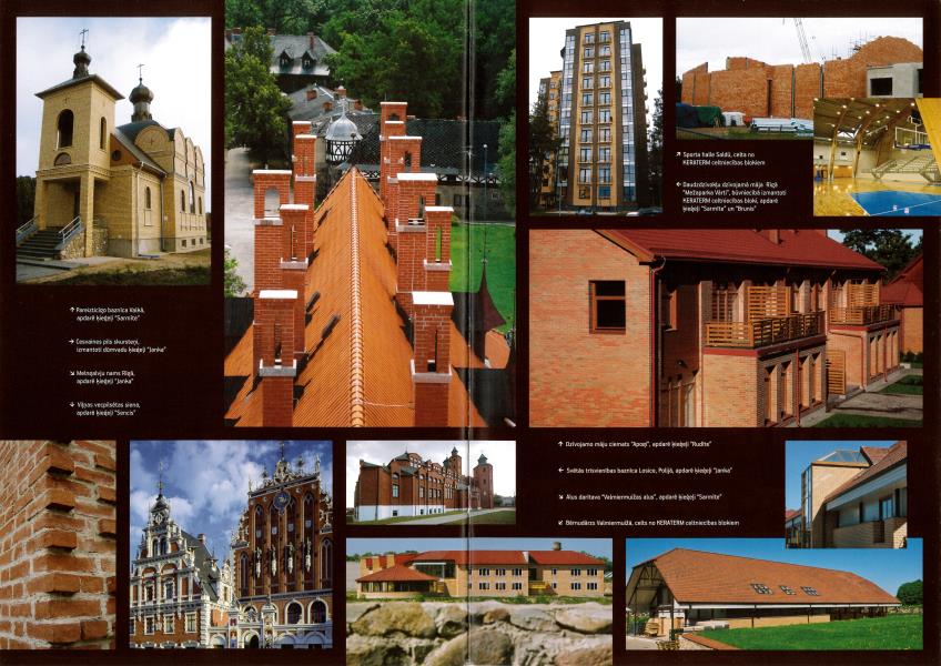 Dažādu ēku fotogrāfijas, kuros tika izmantota rūpnīcas produkcija. Fotogrāfija no SIA "Lode" 2012. gada Produkcijas kataloga.