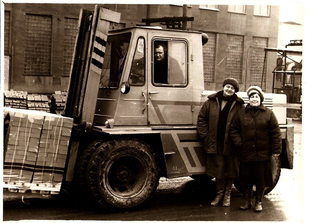 Rūpnīcas strādnieki - sēž Dainis Kursulis, stāv (no kreisās puses) Vizbulīte Vilne, Jekaterina Tihomirova.