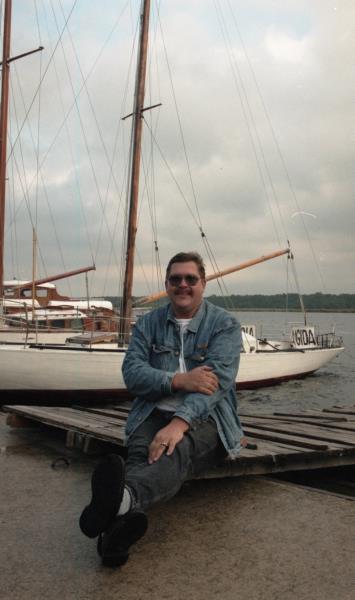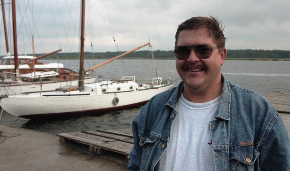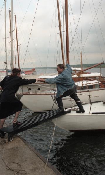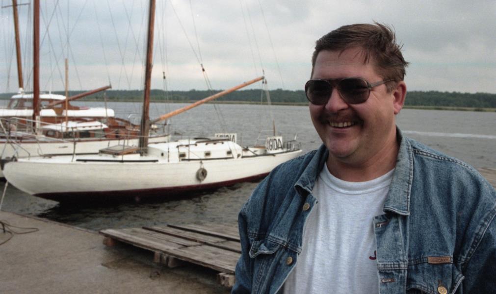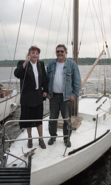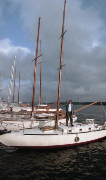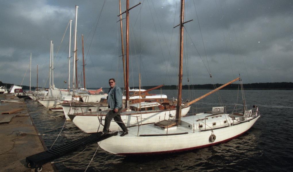 Harijs Užāns pie jahtas. Vējš ar kompāniju pie jahtas.