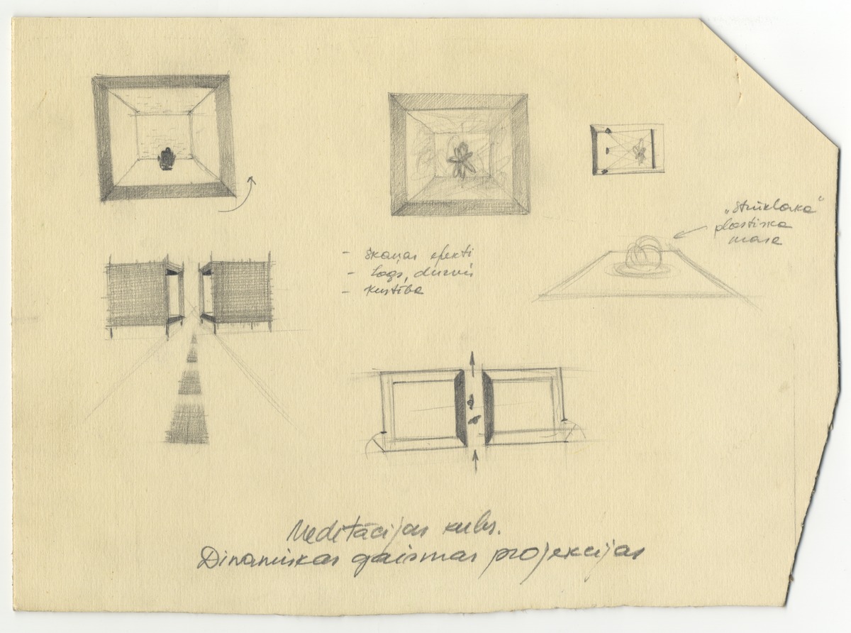Projekts "Klusā istaba" izstādei "Telpa un mēs" Pēterbaznīcā. Meditācijas kubs. Dinamiskas gaismas projekcijas