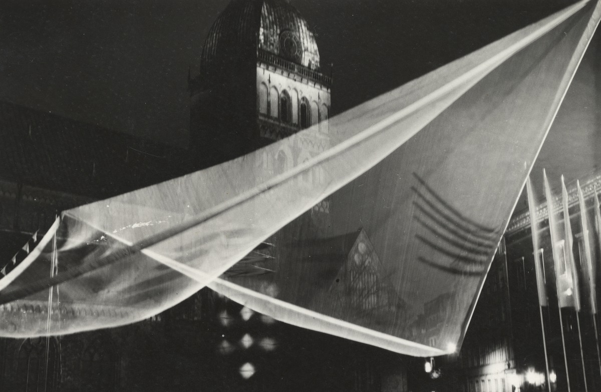 Baltā telts (16x16x9 m). Izstāde "Zīme, Telpa, Mīts". Nakts akcija