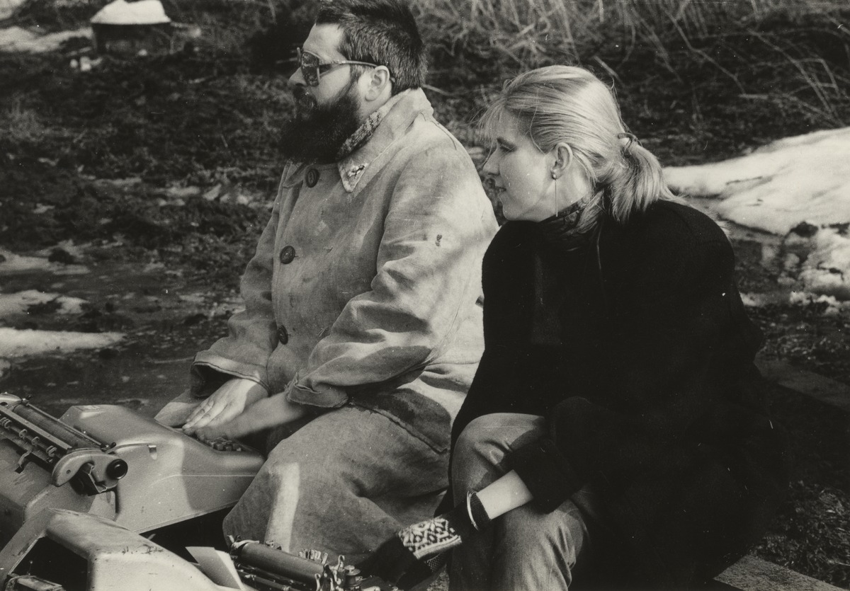 Hardijs Lediņš un Rita Piešiņa performancē Pavasara Tecīla. 1987. Foto: Māris Bogustovs