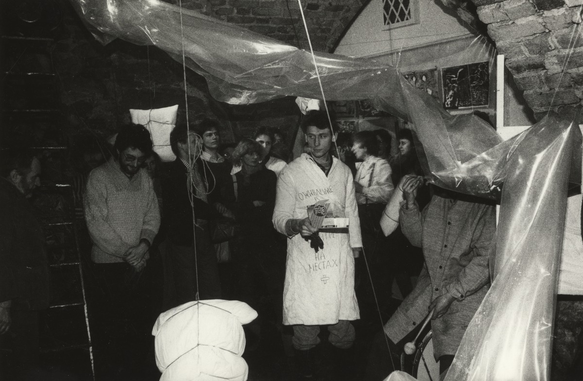Otrā Aptuvenās mākslas izstāde Kurmis alā. Foto: Māris Bogustovs. 1988