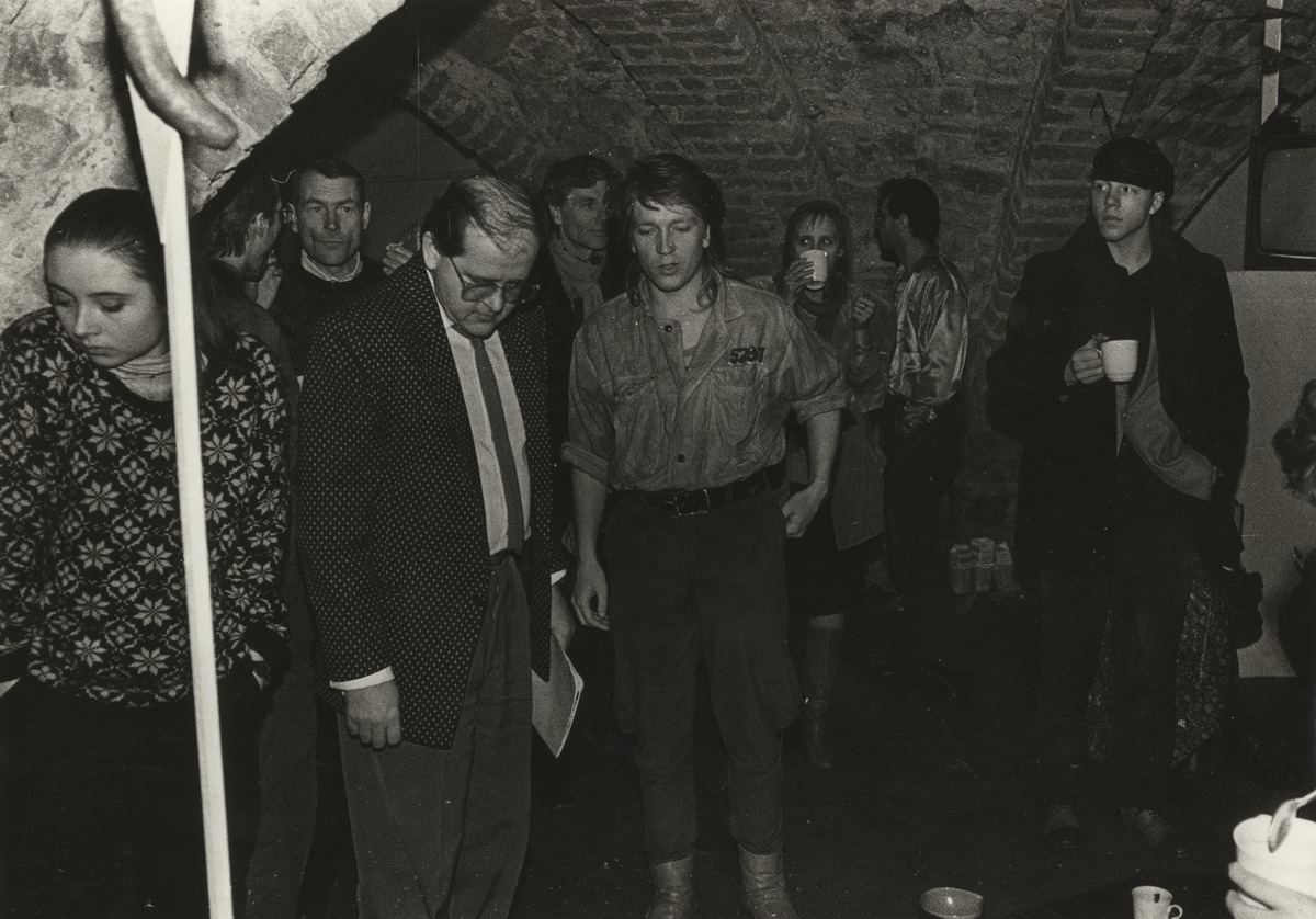 Indulis Bilzēns. Otrā Aptuvenās mākslas izstāde Kurmis alā. Foto: Māris Bogustovs. 1988